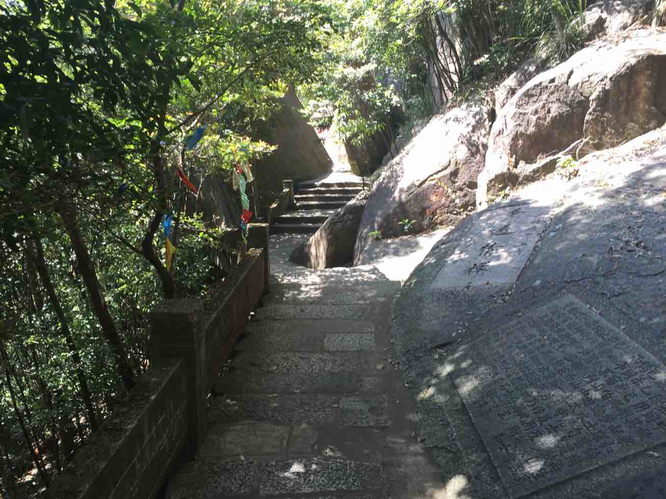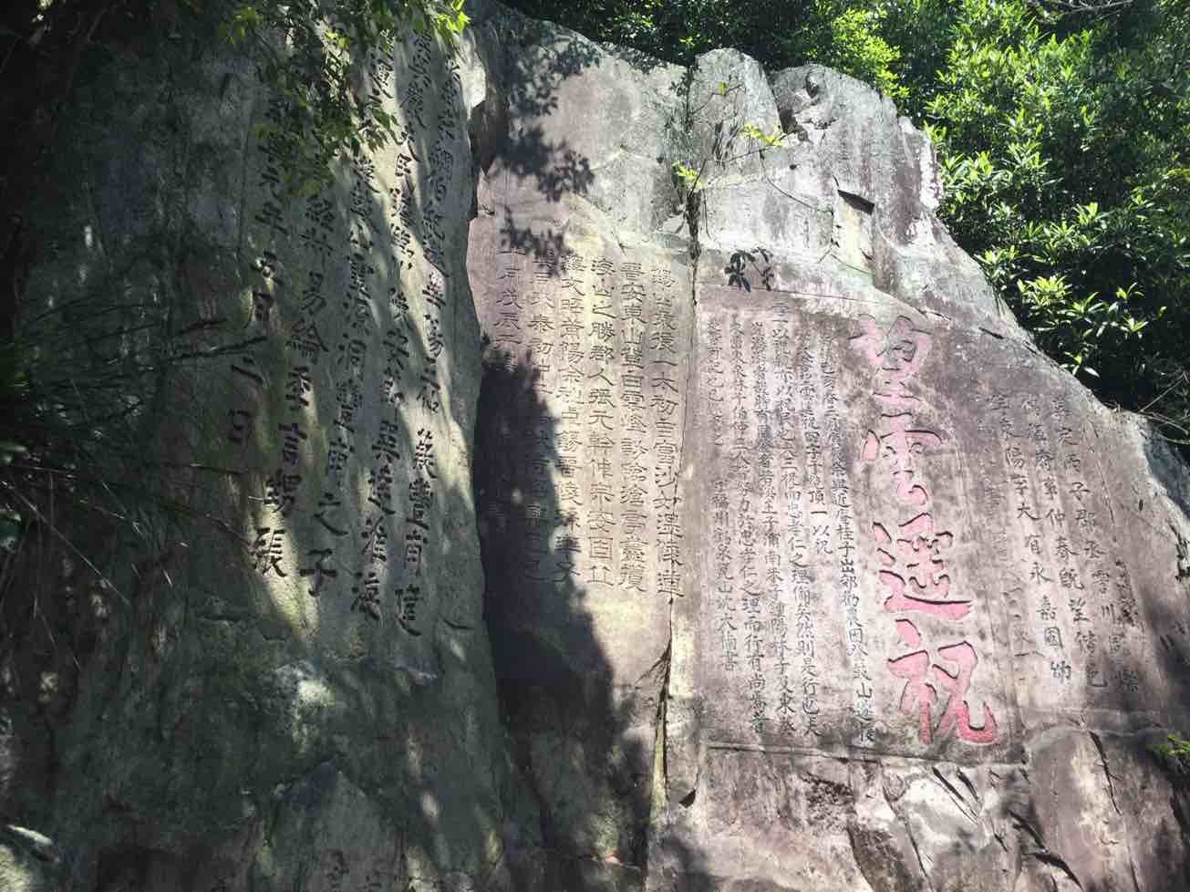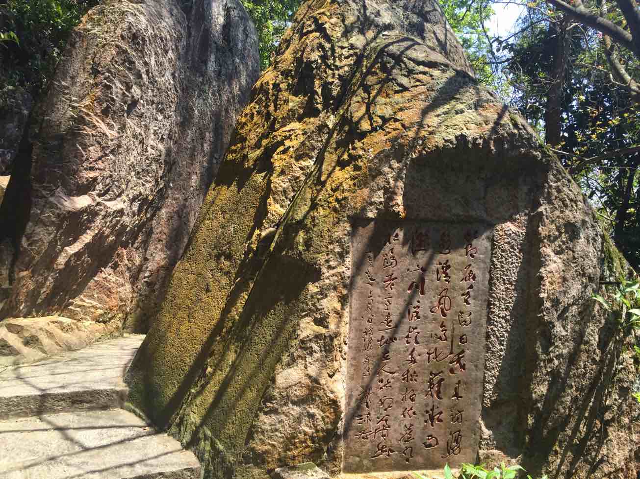 复查过后小女来接我重游福州鼓山,三十三年前在涌泉寺陶塔前的照片还在,如今已沧桑写在脸上。摩崖石刻上大多为陌生的名字,再次站在文豪郭沫若龙飞凤舞的石刻前,心想即使允许我也在这里发挥,但又有谁知道农夫算哪根葱。