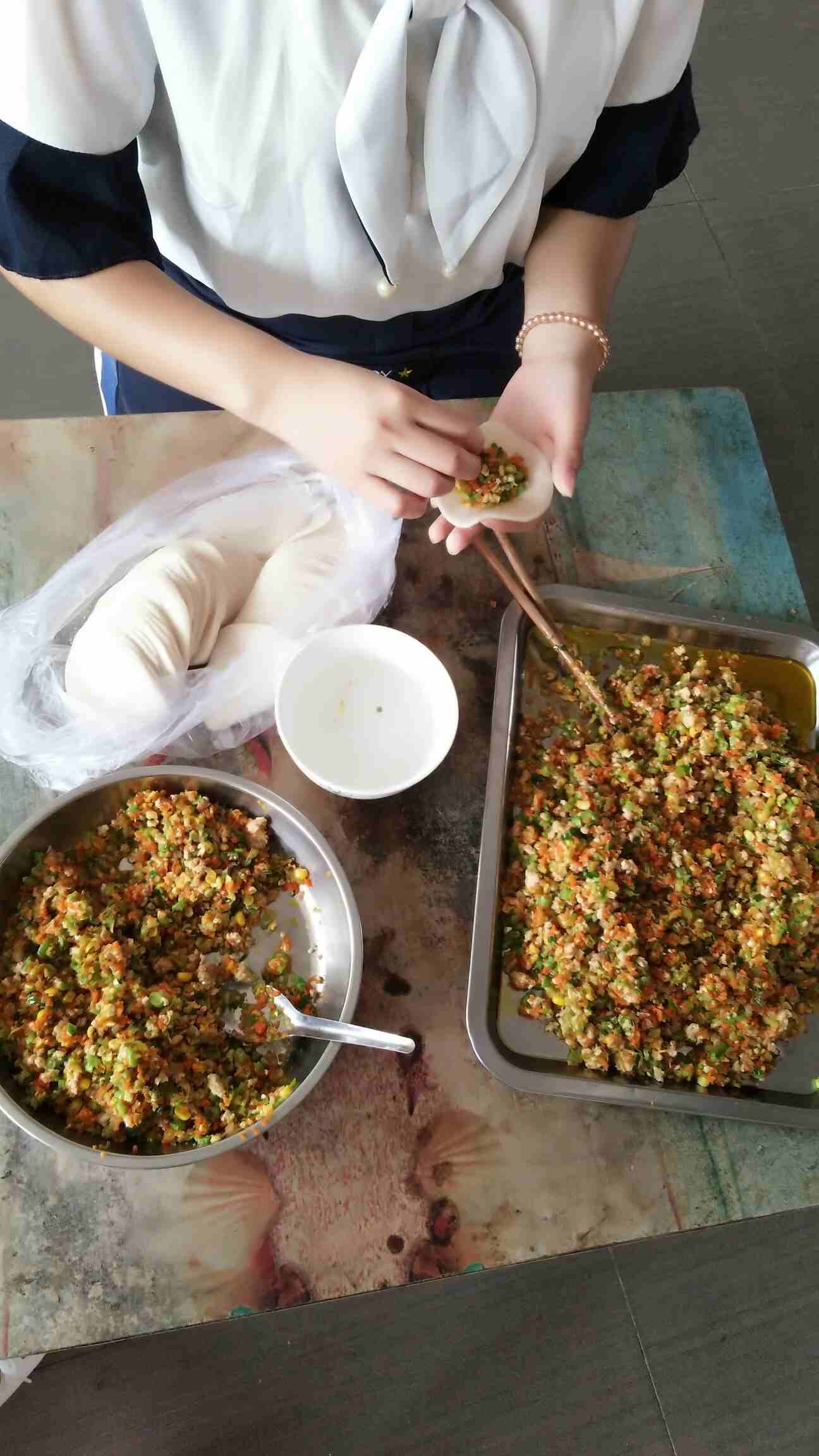 饺子皮是买的。