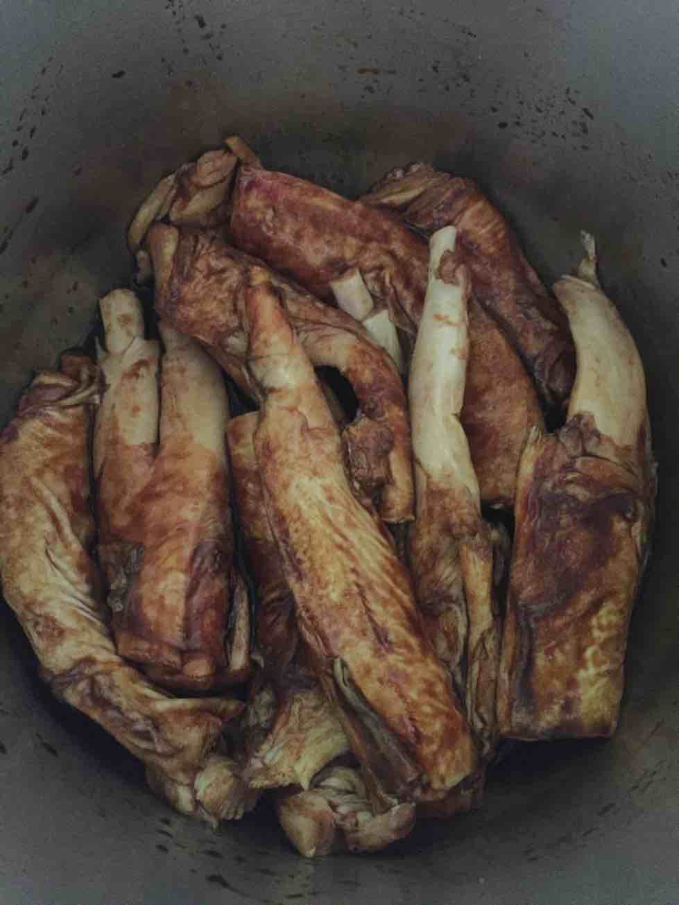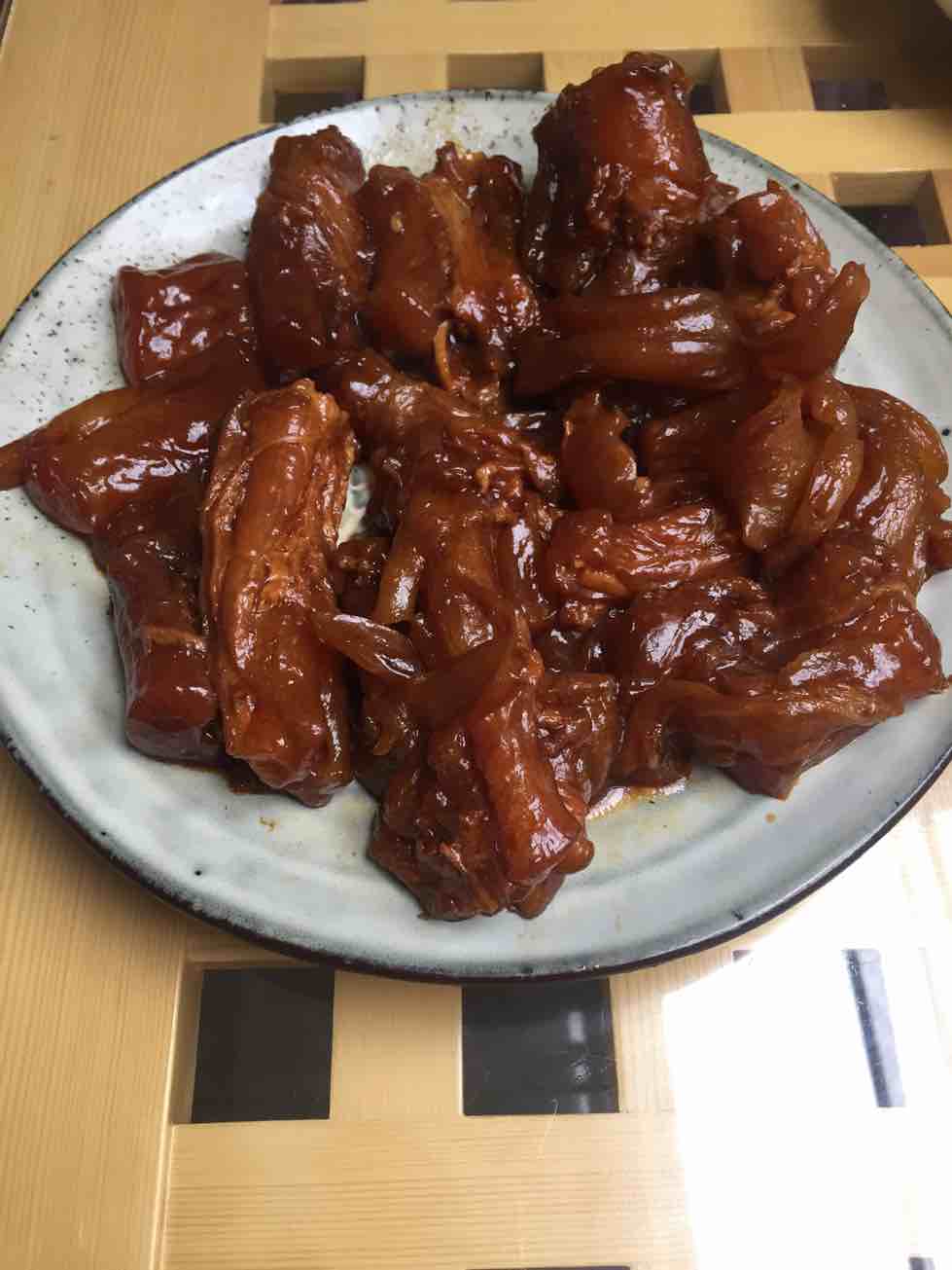 其实之前分享的卤猪耳中也写过怎么做,我怕新来的姐妹没有看过那篇帖子,就再提一次,我用的李锦记的卤水汁,一份汁兑三份水,放几片姜,入高压锅,汁水淹没牛蹄筋就好,上压以后持压30分钟,冷却后分装。
