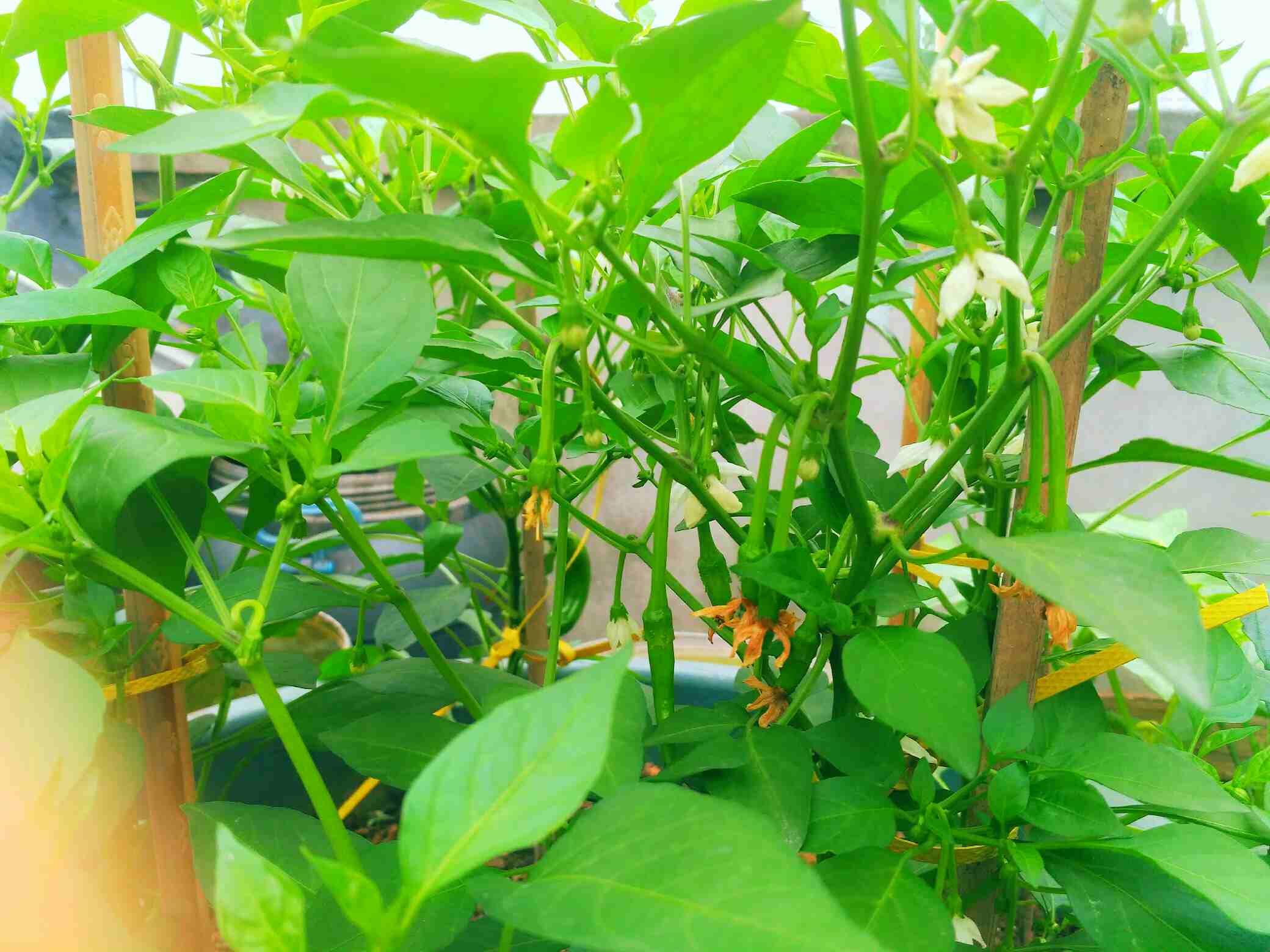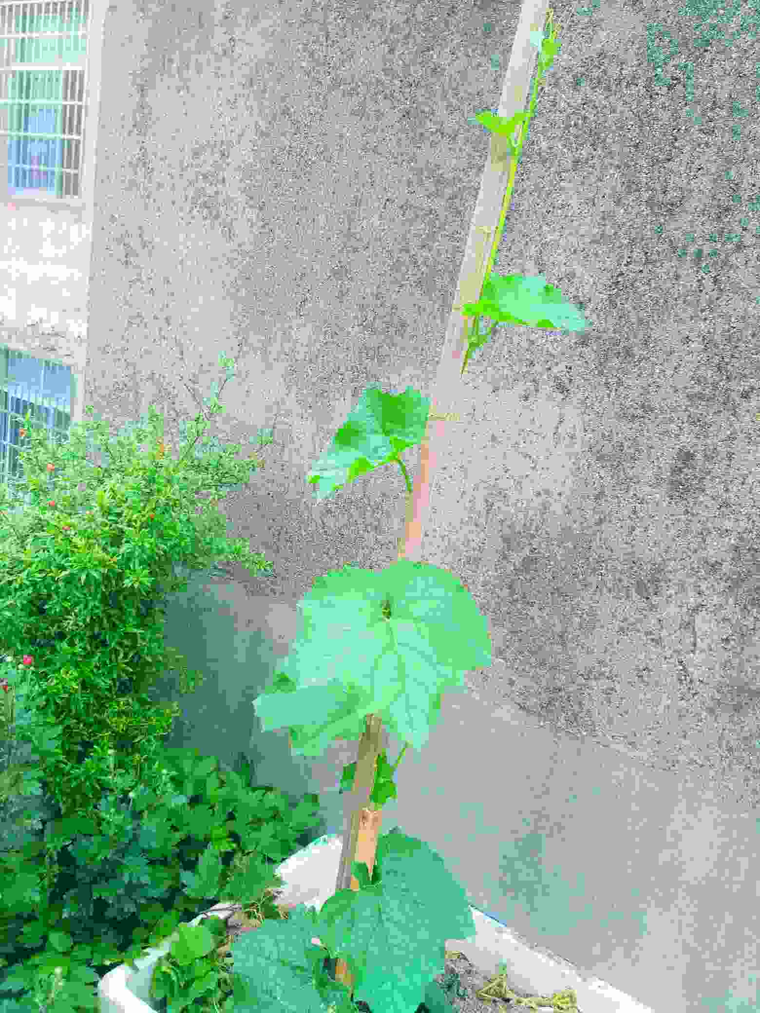 种了好多啊!辣椒、空心菜、苋菜、西葫芦、韭菜、药芹、四季豆、丝瓜