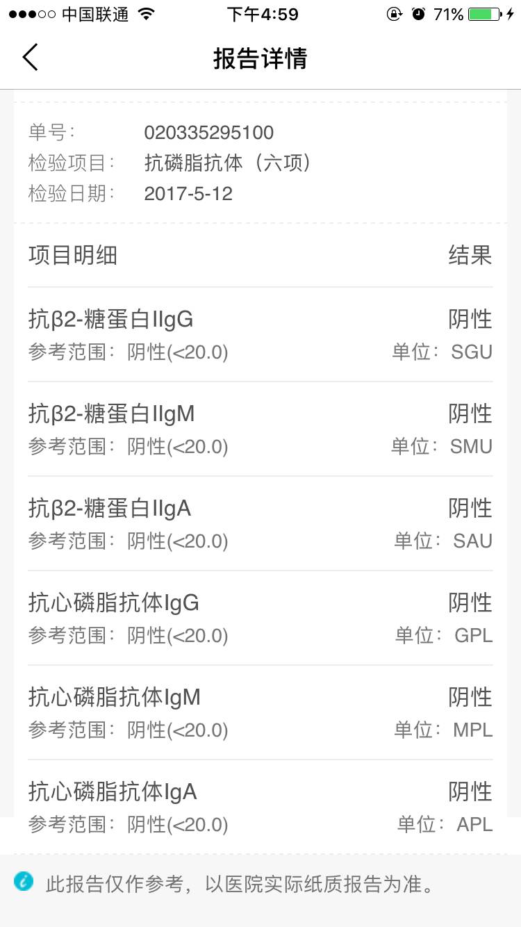 这次查了抗体全套,开心的是抗心磷脂转阴了,前几次查都是阳性;而和上一次抗体全套对比,之前有8个阳性,这一次减少到5个了,还是要鼓励下自己的;