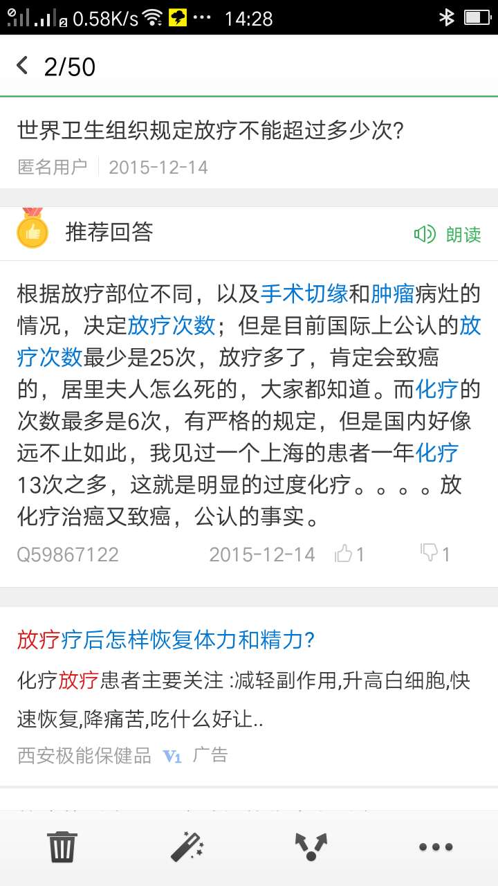 我一年化疗了18次,最后几次一次比一次不能吃,运动量也跟着减少,10次左右的时候己经想停了,医生家人都说不能停,现在又回到手术前,比手术前更差了。后悔呀