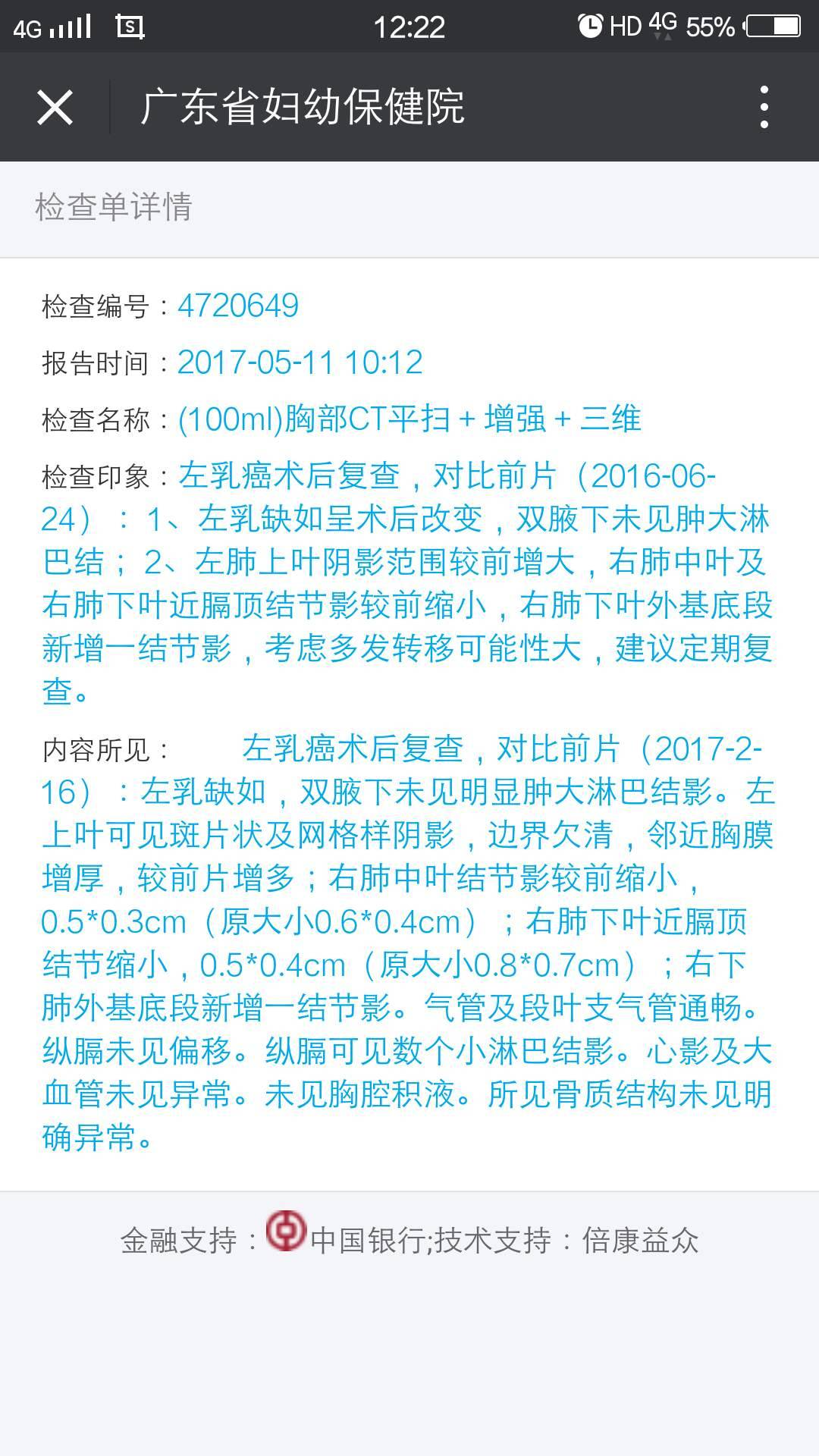 做完放化疗结束半年,还在打赫赛汀第13次,第二次来复查发现肺有新增许多个节结,CT结果是多发性肺转移的可能大,伤心难过二天后想通了,除了坚强面对,别无选择,无泪可流