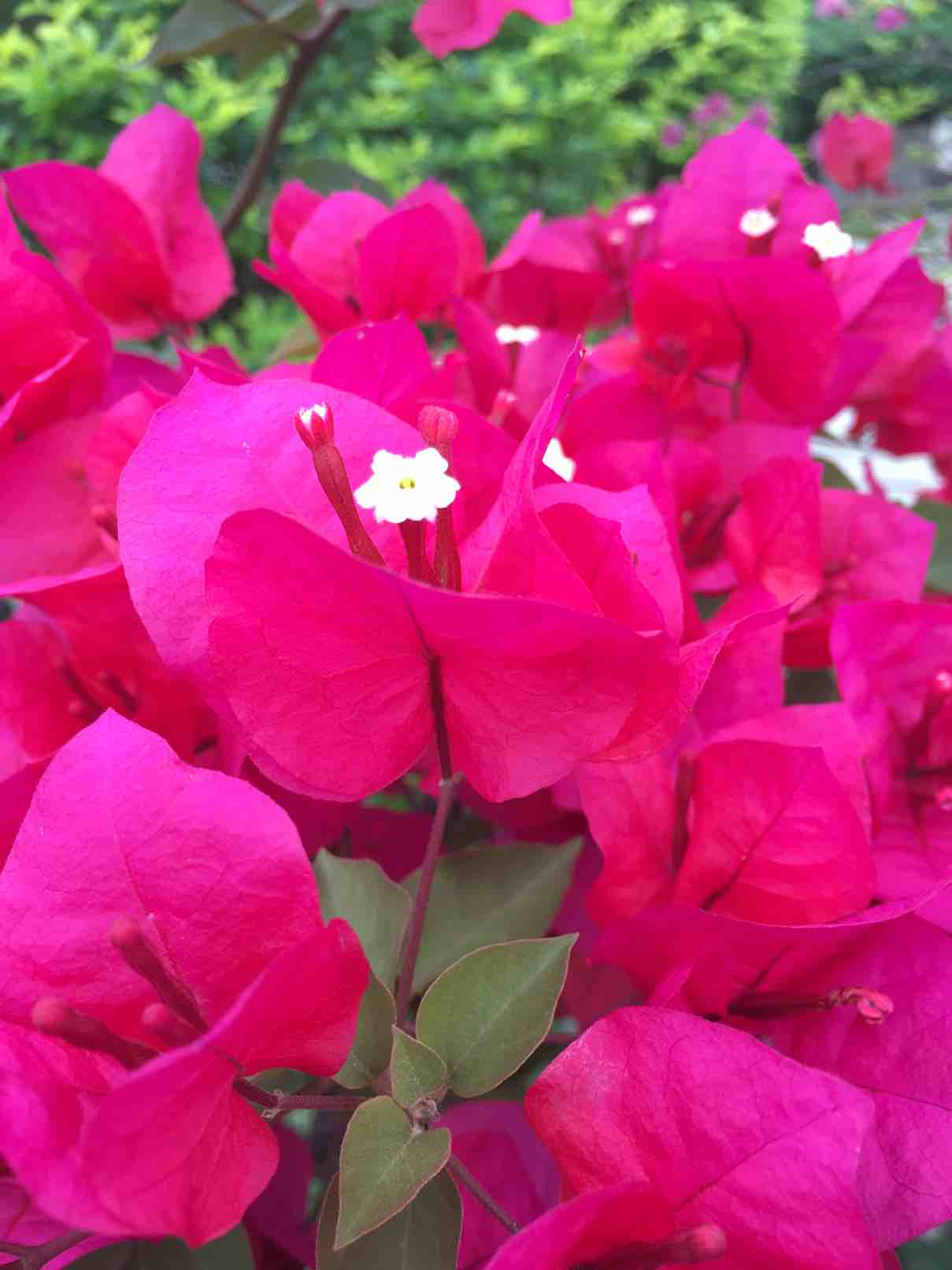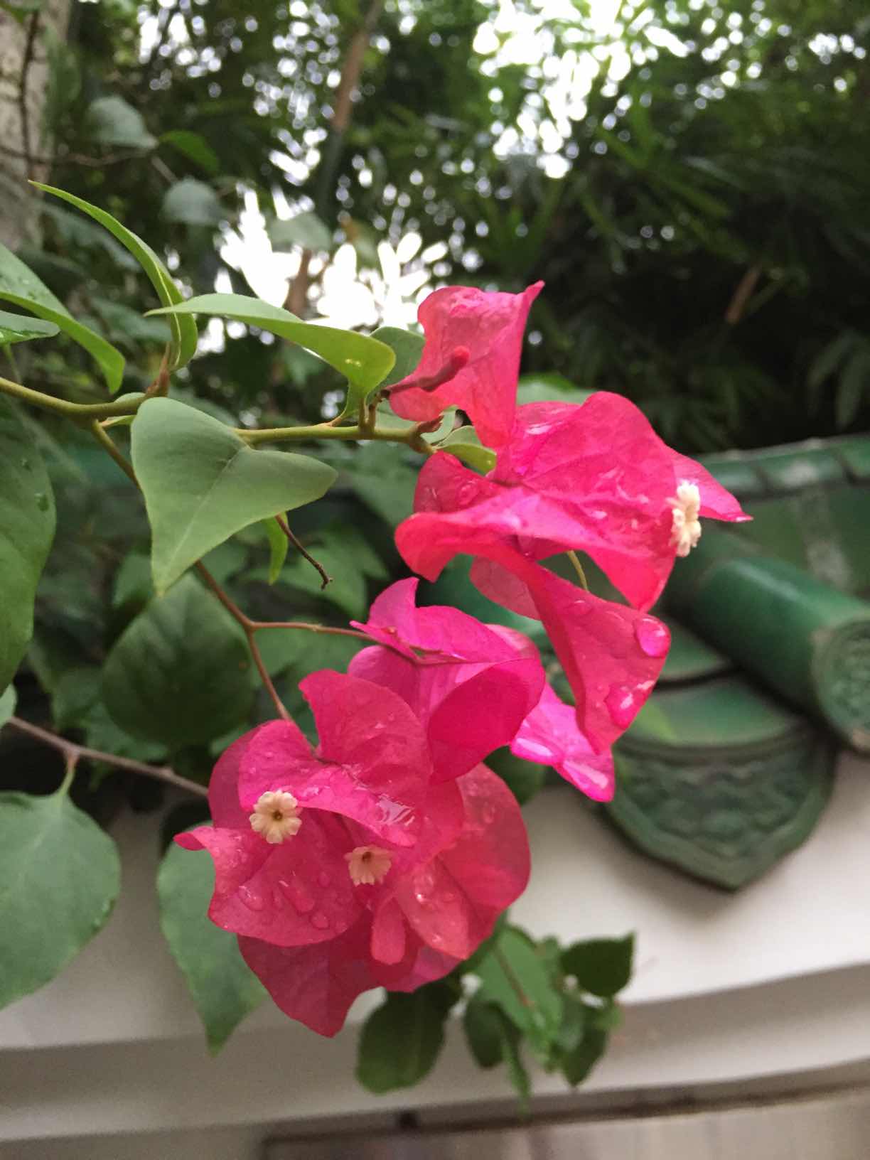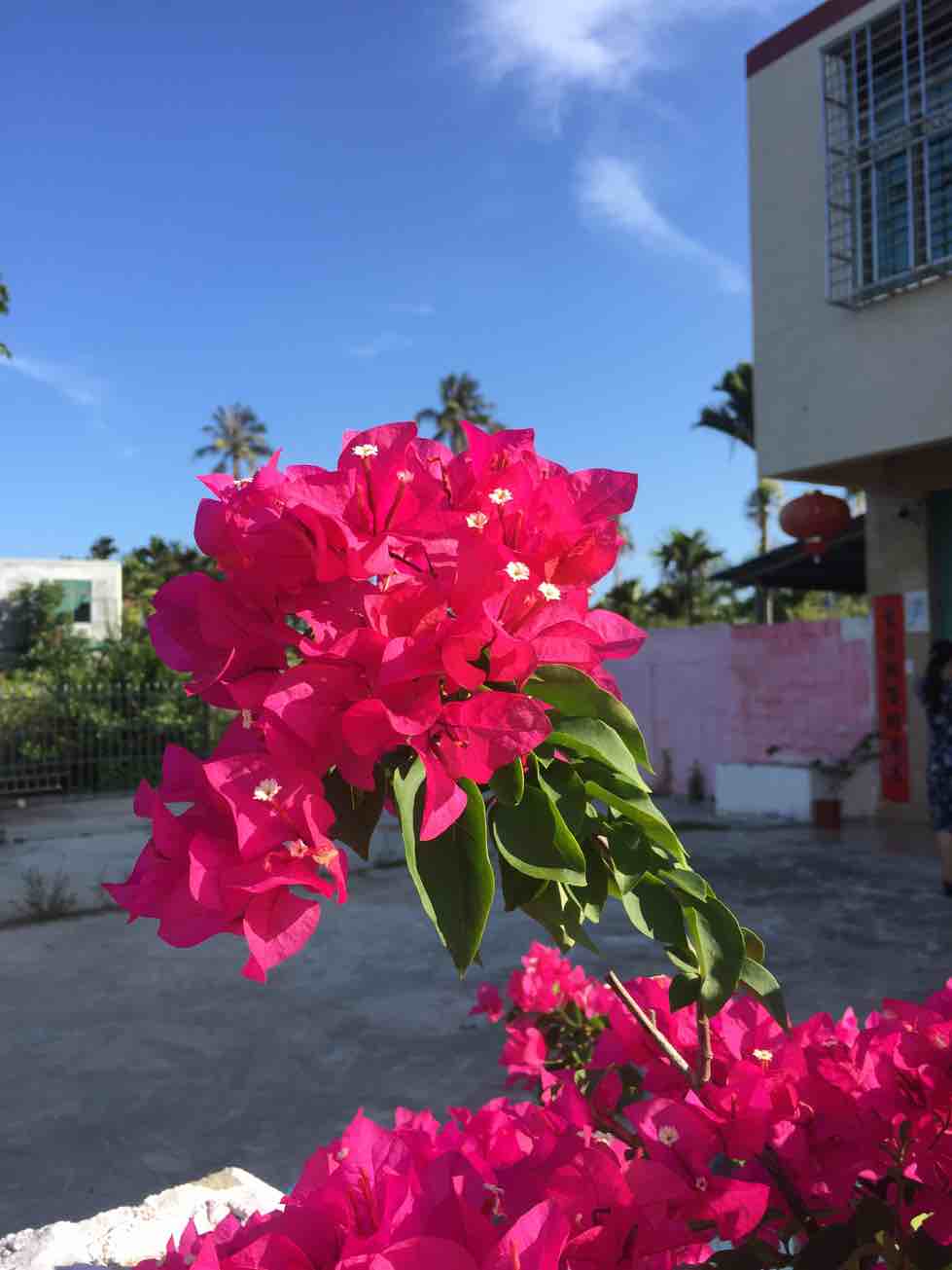 也许很多人不知道,三角梅是海南省省花海口市市花,我国各地根据其方言及三角梅的特征,分别给予各种叫法,常见的有勒杜鹃、叶子花、南美紫茉莉、纸花、九重葛、宝巾和贺春红等。它在阳光☀️照耀下绚烂无比,在雨中依然灿烂美丽,