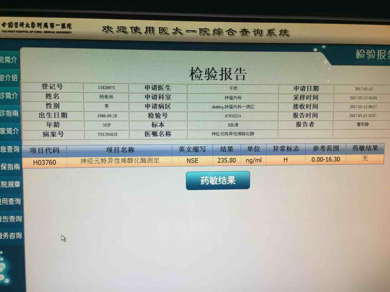 nse本来就是小细胞癌的首选肿瘤标志物,以前没有测过?