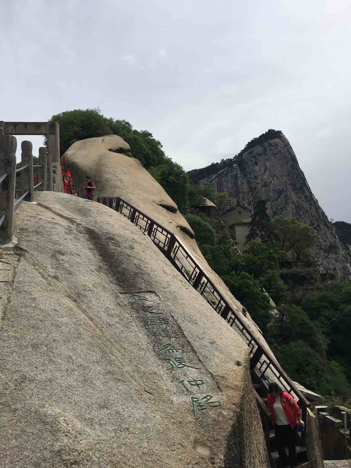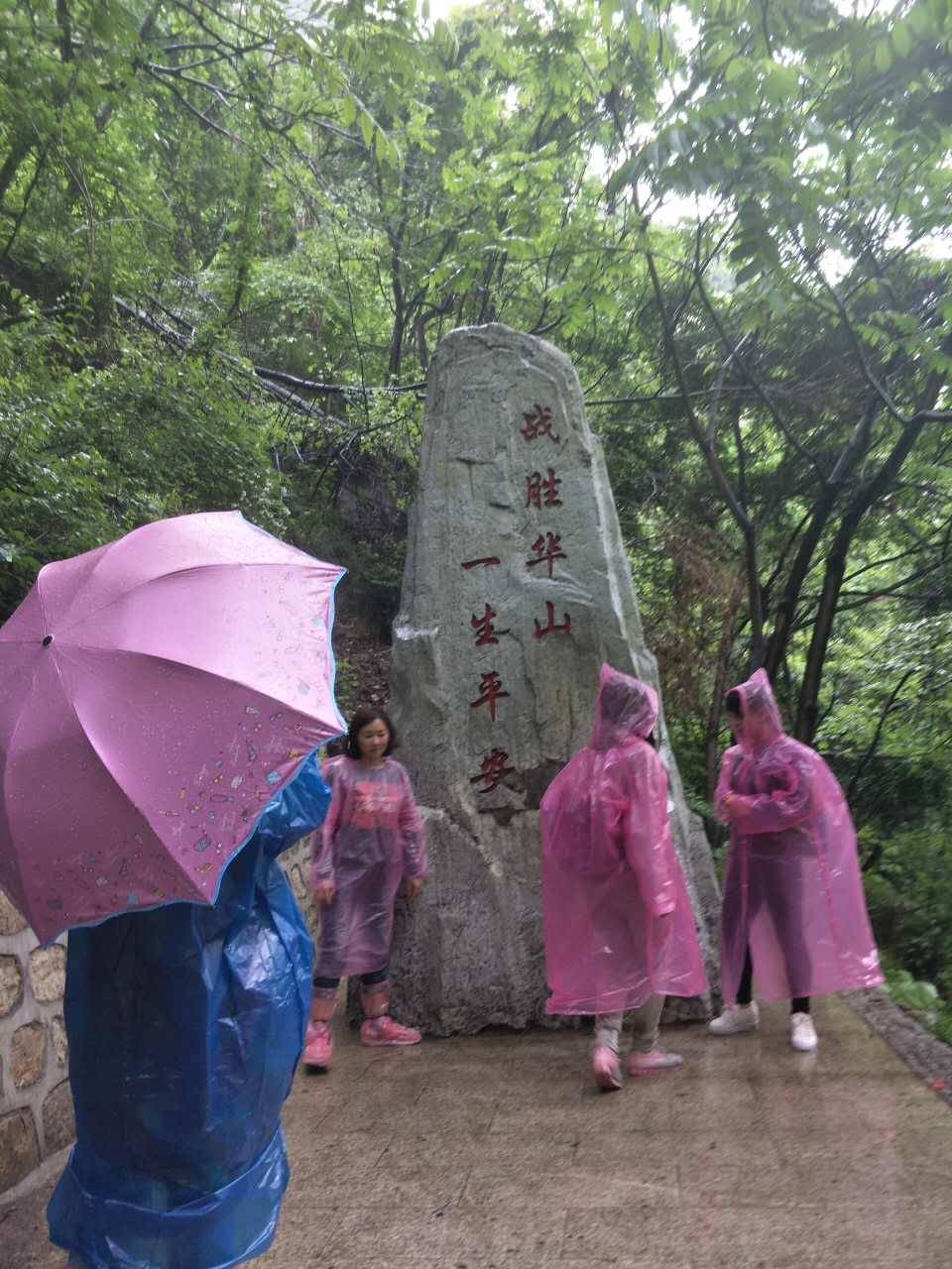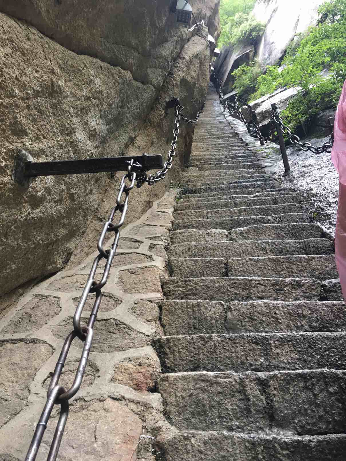 昨日华山下雨,也阻挡不了我们要攀登华山的决心。我们穿着雨衣,套上雨靴,举着伞,从玉泉院开始,一路爬爬停停,经过华山最具代表的千尺幢与百尺峡,用了差不多两个小时,顺利登上了华山的北峰顶。由于下雨与出汗的缘故,我们到峰顶时,全身都湿透了,只好火速坐北峰索道下山。这一路的惊险与美景让我心旷神怡!