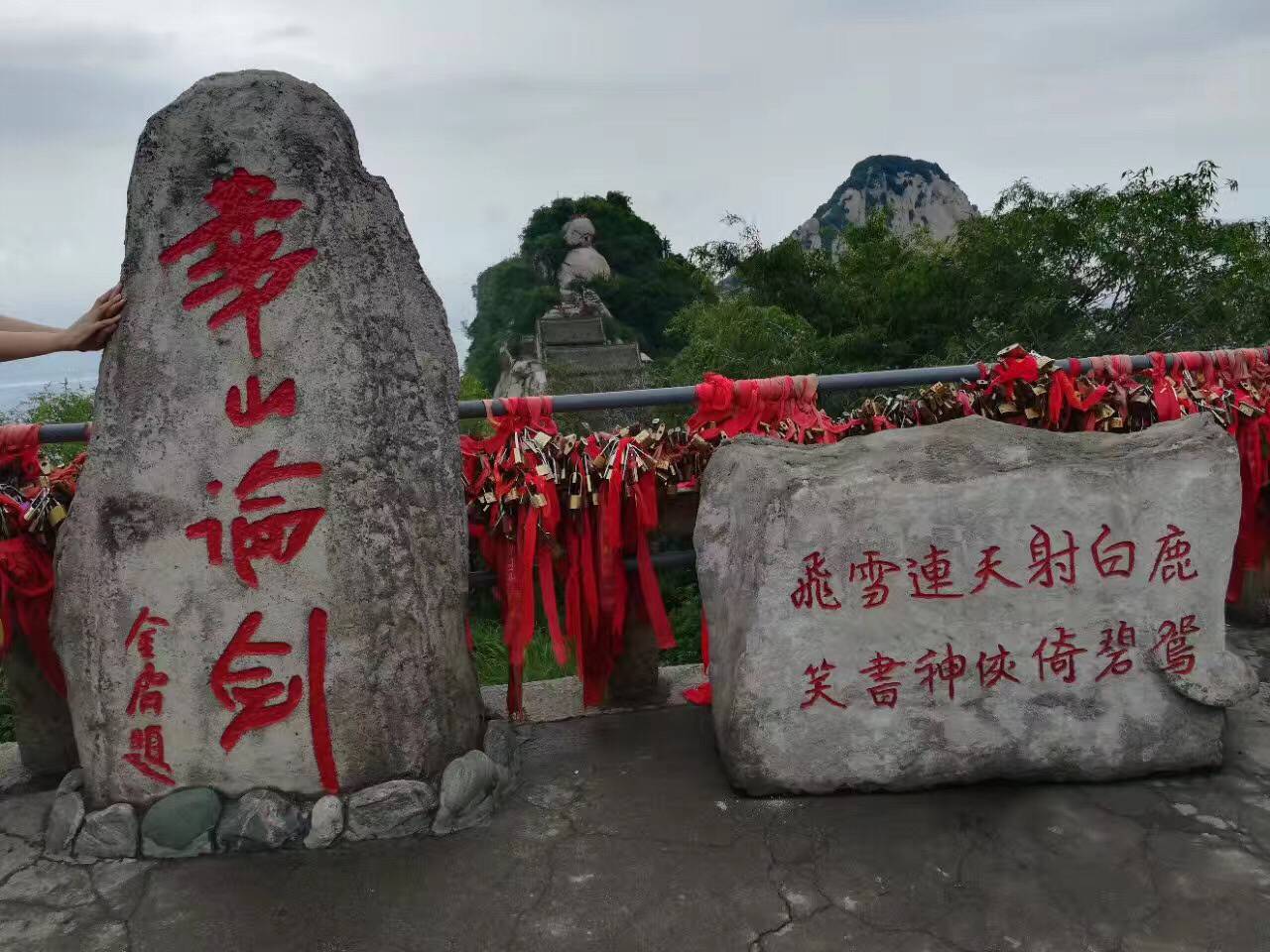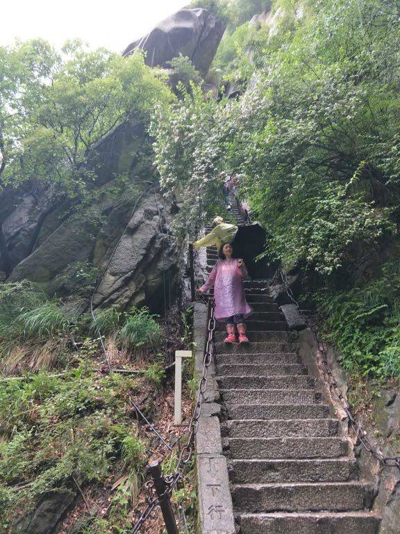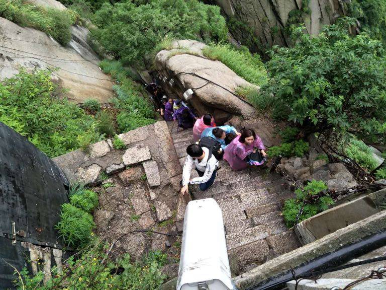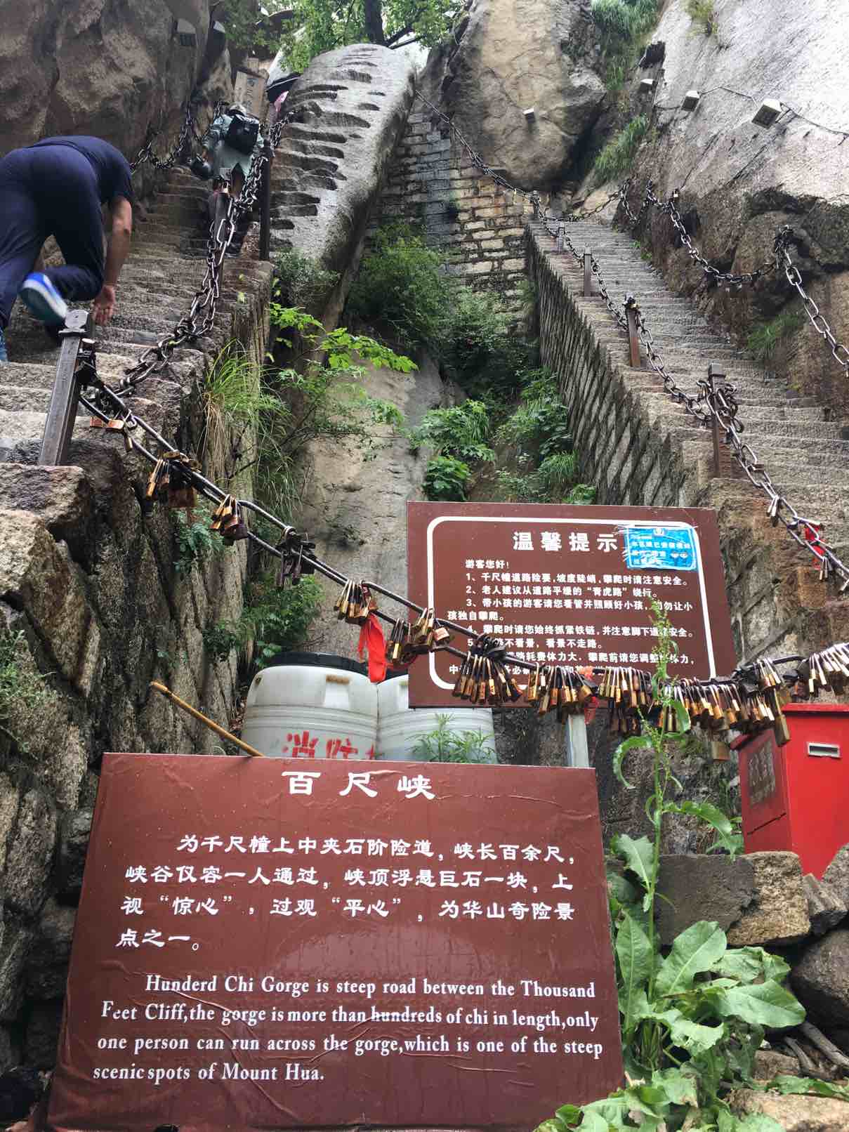 昨日华山下雨,也阻挡不了我们要攀登华山的决心。我们穿着雨衣,套上雨靴,举着伞,从玉泉院开始,一路爬爬停停,经过华山最具代表的千尺幢与百尺峡,用了差不多两个小时,顺利登上了华山的北峰顶。由于下雨与出汗的缘故,我们到峰顶时,全身都湿透了,只好火速坐北峰索道下山。这一路的惊险与美景让我心旷神怡!