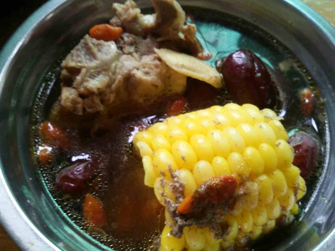 玉米猪骨,红枣,杞子,北芪,混着熬的