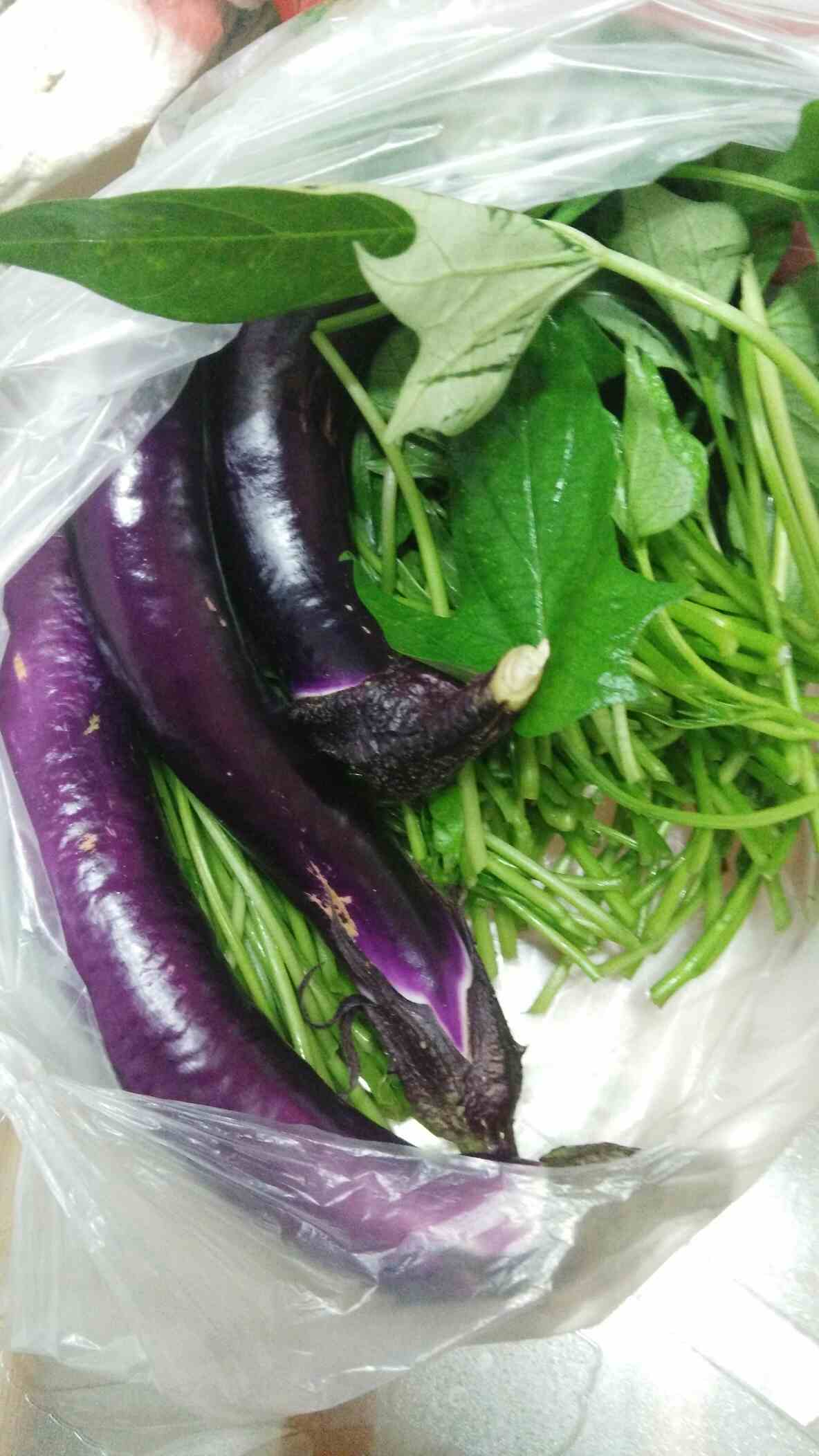 买了茄子,地瓜叶,马铃薯就回家了