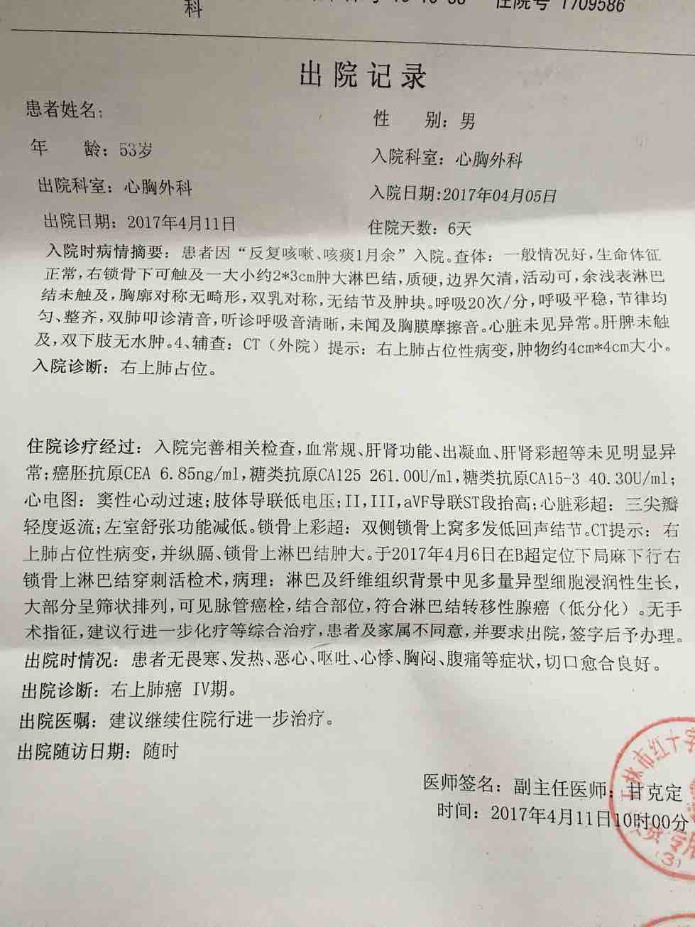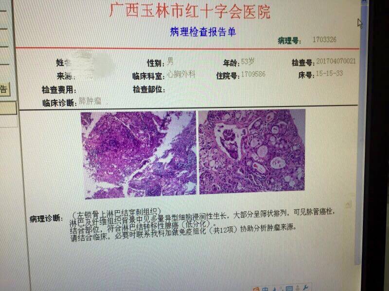 2017年3月27日,爸爸因为觉得胸闷,也咳嗽了一段时间,吃药不见好转,突然就瘦了10来斤,就让他去医院检查一下,早上去拍了个CT,结果处写周围型肺癌。医生让到市里医院再拍一个确诊一下,下午就去了,结果第二天才得。第二天早早就赶去医院,领到片子之后感觉天都塌了,写的是周围型肺CA,没直接写癌,但是我之前查过,我爸不知情,因为他觉得自己身体没什么症状,就是咳痰,拿去给医生看了,医生看了只是说很严重了,马上要住院了。说有些检查要住院才能检。办理了住院,病情一直是瞒着我爸的,只是跟他说是肺炎,那段时间简直让我痛苦不堪,每天查资料,看看又哭哭,看了许多别人分享的病例,觉得首先家属要坚强起来,才能帮助患者共度难关。爸爸在住院了一个多星期,医院伙食不好,每天也只吃得下粥,人又瘦了一圈,检查结果出来了。是肺癌晚期IV期了,医生说已经没有手术价值了,淋巴转移了,病灶的位置也不好。问我们是放疗还是吃靶向药,这应该是我人生做得最艰难的抉择了。放疗每月一次,副作用也很大,也怕他知道病情胡思乱想。跟家人商量后决定吃靶向药,继续隐瞒病情。医生推荐了阿帕替尼,从外面拿的药,一个月6678,拿了一个月回家,4月11日开始吃靶向药,吃了一个星期咳嗽缓解了,痰也很少了,每天吃了饭还能出去走走,好景不长,吃了20来天就出现了手足综合症副作用,手脚都脱皮了,脚痛得行走困难,只能安慰他是过渡期,很快就好了,可是这个症状过渡得有点长,5月5号就出现了喉咙痛,咽口水都痛,饭也吃不下了,只能勉强吃点粥,在外面拿了治喉咙痛的药也不管用,觉得应该是阿帕替尼的原因,5月11日时无奈停了药,停药之后马上第二天就开始咳嗽咳痰,痰稠有血丝,每次看他咳不出来气喘的样子都心疼不已,连续几天,吃止咳药也不好转,这两天还说头痛,睡觉睡不了,只能坐着,精神状态有点差,为什么有这么痛苦的病,这么折磨人。今天只能又开始吃阿帕替尼,看看咳嗽头痛症状会不会缓解。每次他难受了都说不知道生的什么病,我都跟他说没什么的,只是个慢性病,一直吃药就好了,谁知道我又偷偷哭了多少回。以前都觉得癌症离自己很远,当身边的人患上这种病的时候,真的是一种无以言表的心情。