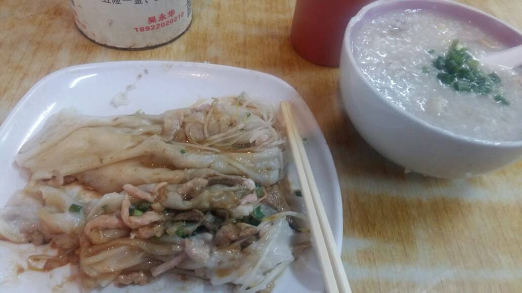 有半个月没在外面吃早餐了,不知是吃药的缘故,胃口变大了,今天一次要了肠粉跟粥,偶尔放纵一下