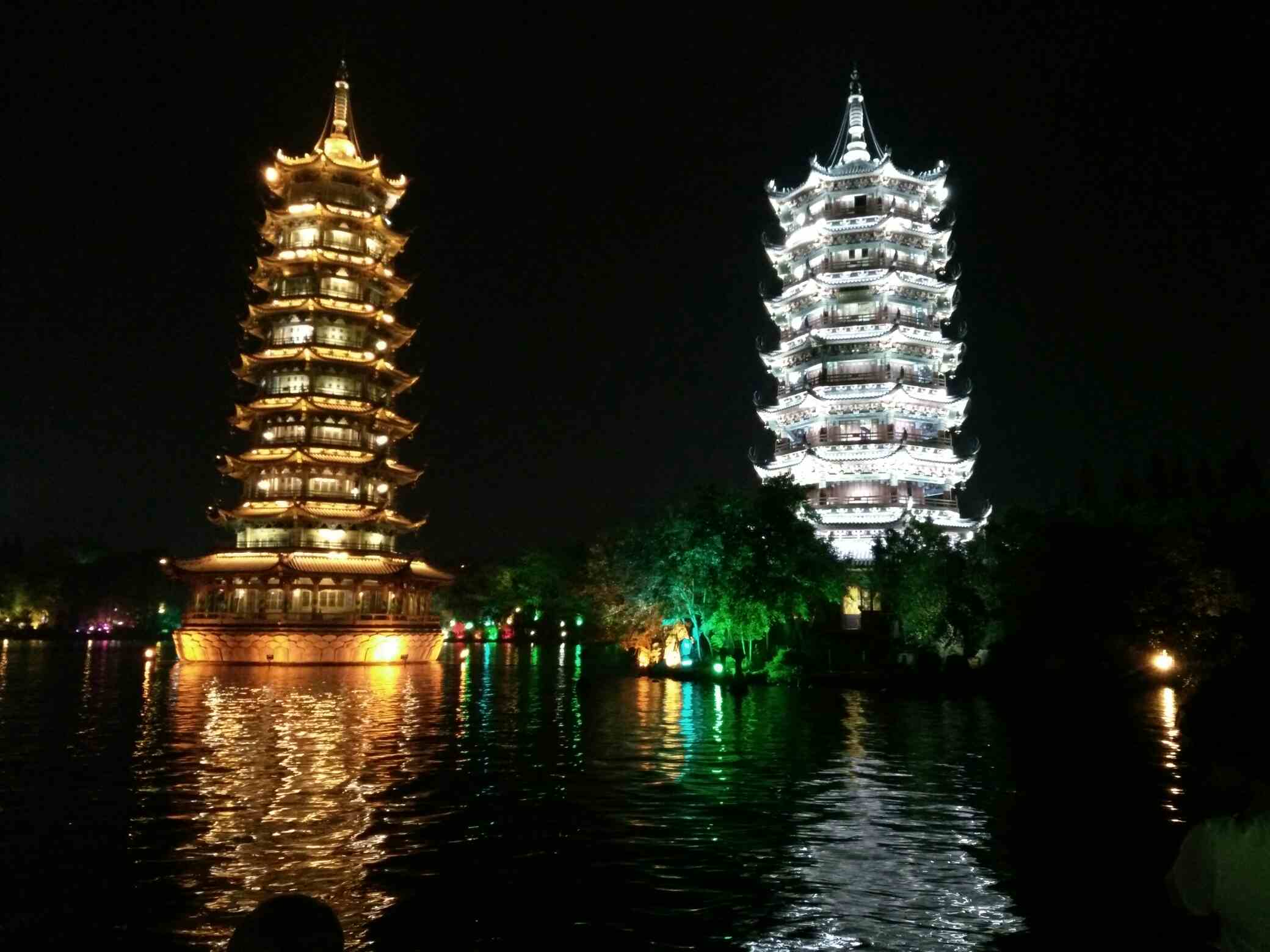 在桂林继续游玩,去了刘三姐大观园,参观了靖王府,登了独秀峰,吃了当地特产米粉后,晚上观赏了一江四湖及日月双塔夜景,愉快的三天旅行结束。
