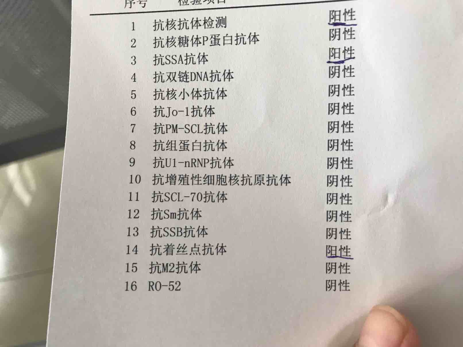 简简单单156这个是检查自身免疫力的!你有三项阳性呢!
