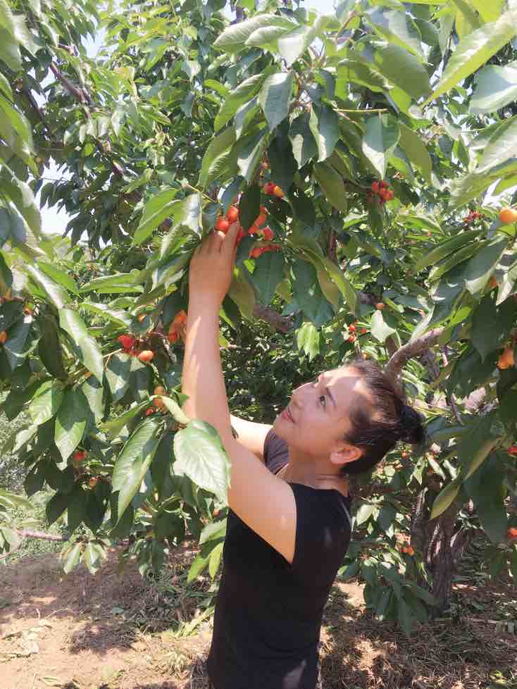 美女,樱桃熟了,真新鲜,可惜离你太远