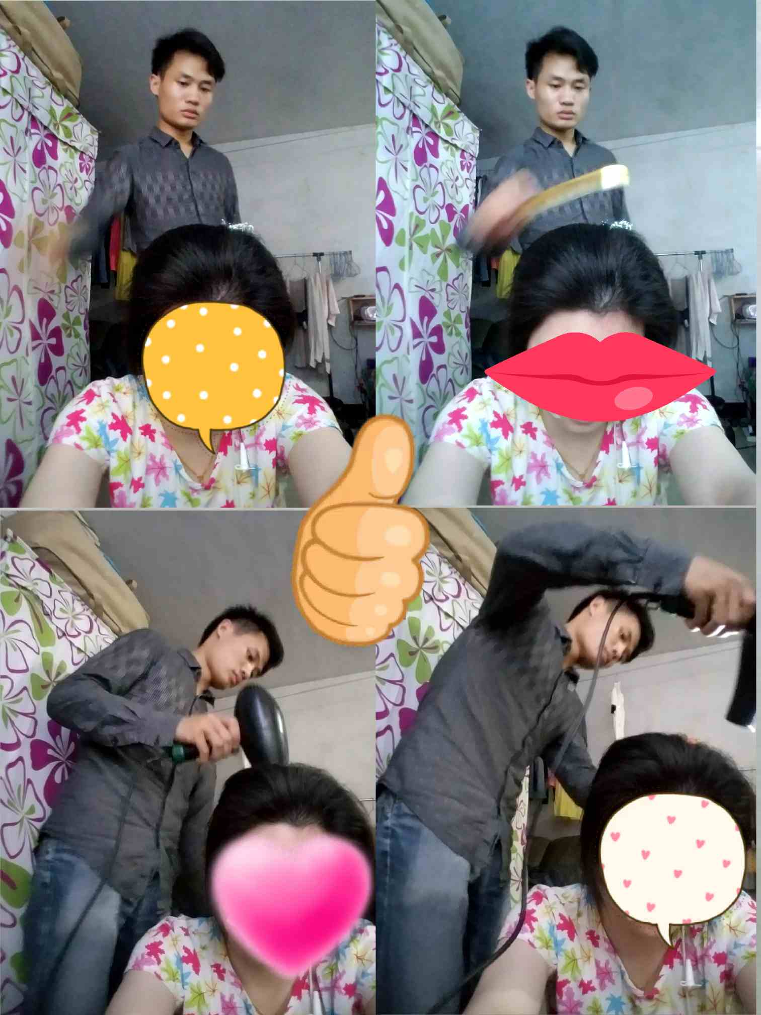 不过晚上回来住处,我洗头,他帮我吹头发了😊😊😊这也是一种幸福吧!