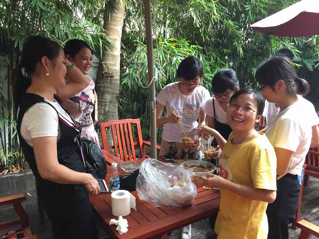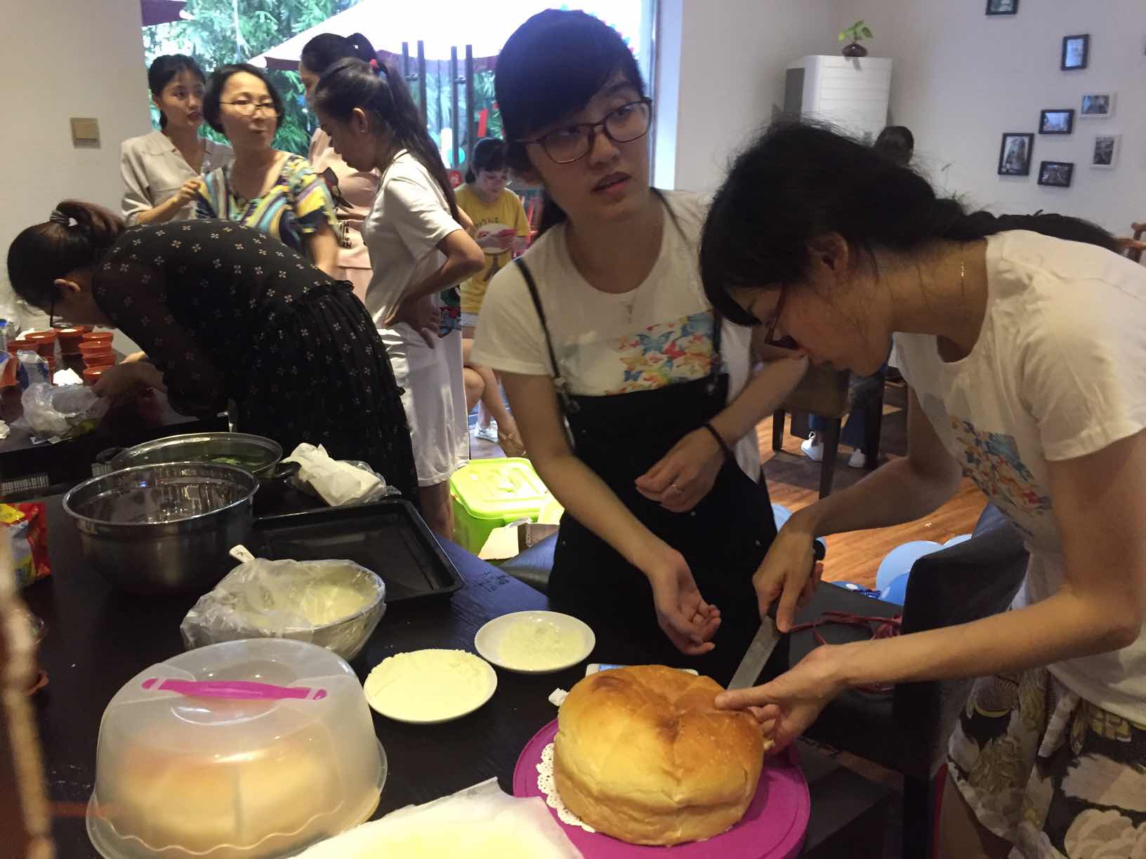 我们的采购组、烘培组、布景组、后勤组从早上七点出门,