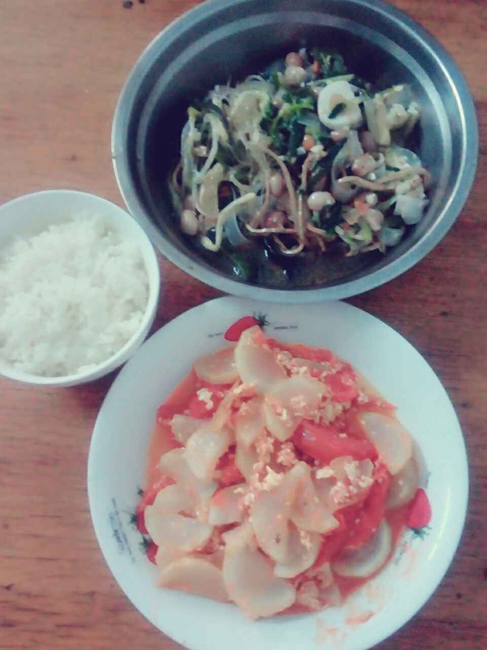 红白相间的是西红柿炒鸡蛋鸡蛋再加萝卜?
