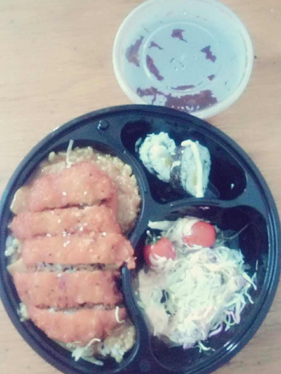 就点的美团外卖,好后悔在他家点,哎,看着还不错,又有水果,蔬菜沙拉,寿司,酸梅汤的,送过来这么糟糕,咖喱就点点,哎,真心吃不下去~😭