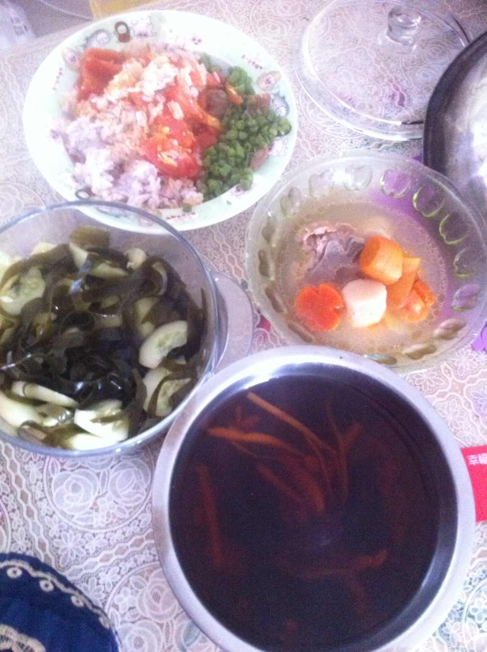 一个人的午餐,简单、随意,每天必须餐(黄芪、党生、灵芝、红枣、枸杞、茯苓)补气又养颜