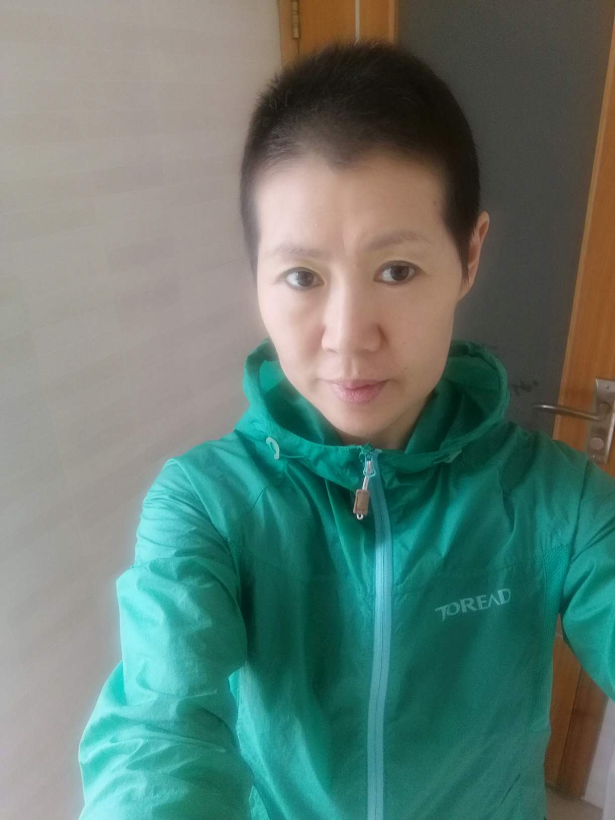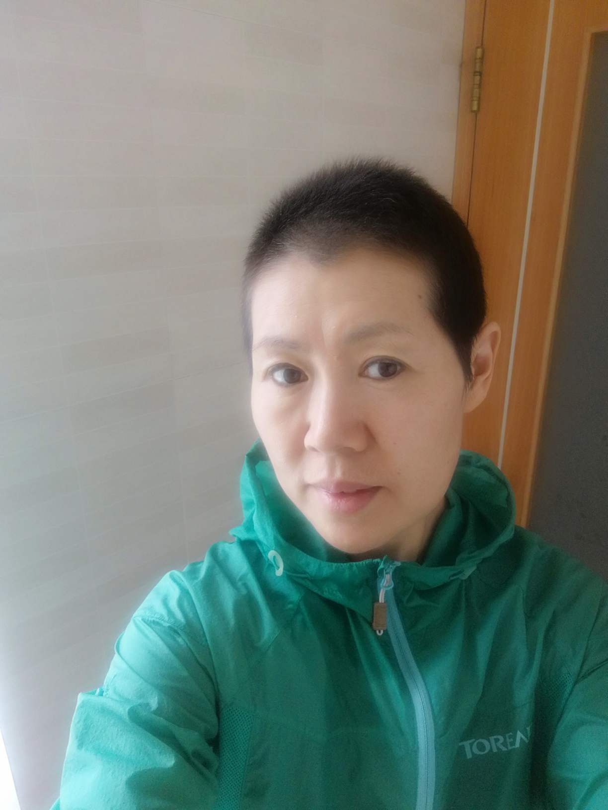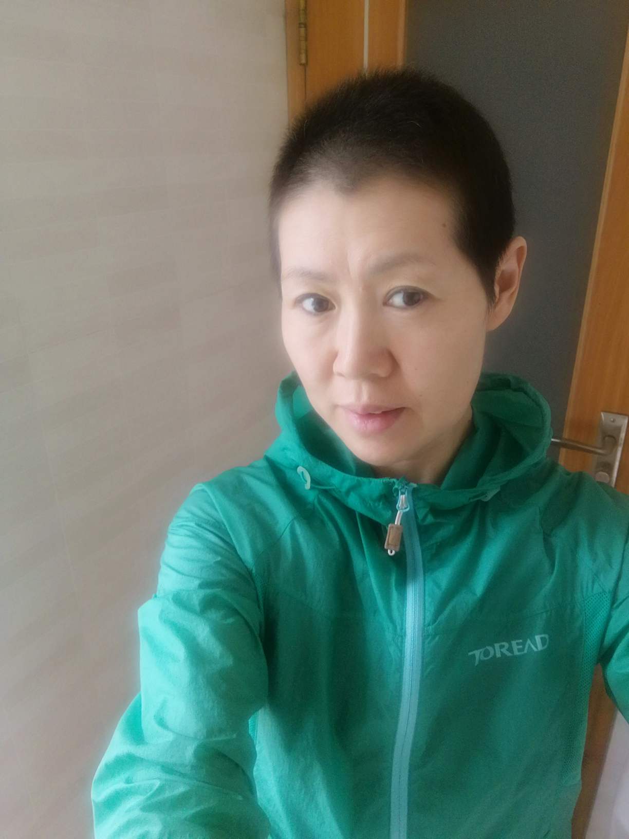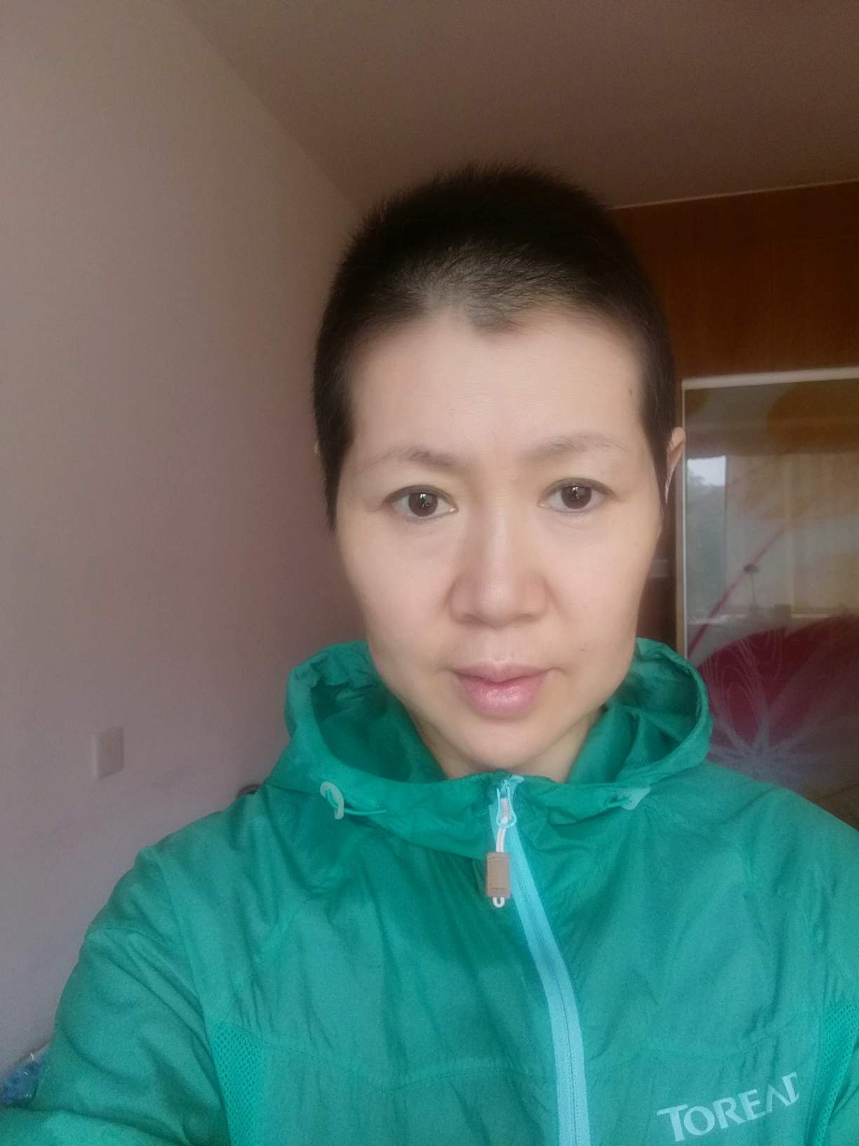放化疗结束后第一次剪头,头发后脑勺两鬓大片面积长的比较快,就是头顶处头发死不长,今天让理发师修修后面,稍微有点型,头顶处就没动,剪完后就这种状态,不管了,天热了,帽子不想戴,假发更不想沾头皮(难受),就这样出去,随去!