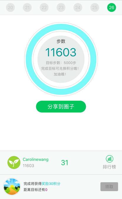 走了1万多步啊,挺厉害的啊。不用分享到圈子,也可以领积分