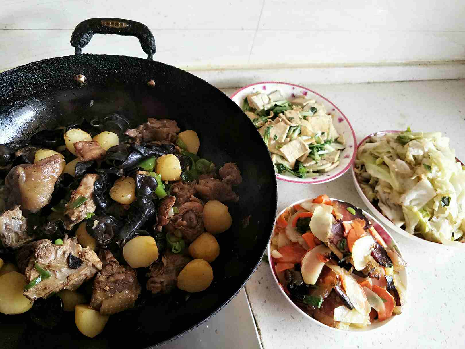 很丰盛呀,看别人家的菜都好吃