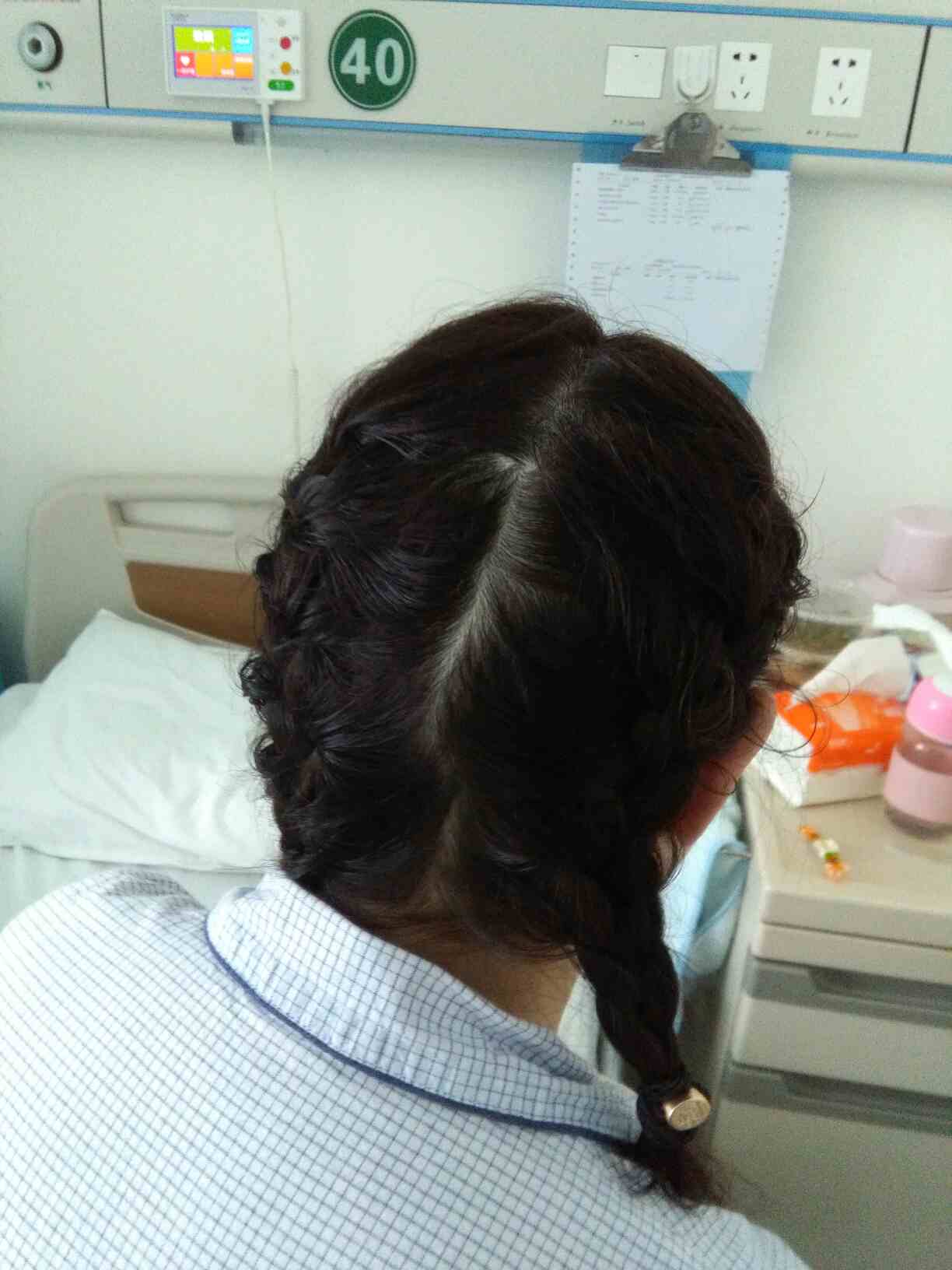 又发烧了,眼睛也出了问题,所有检查下来,说我狼疮脑病复发了,激素冲击,免疫球蛋白一起用上了,退烧了两天,今天又发烧,治疗路漫漫,辛苦了我的老妈,老公,鼓励陪伴照顾!今天早上老妈给我梳的娃娃辫子,我还挺喜欢的,发烧头发老是湿了,这样不错!