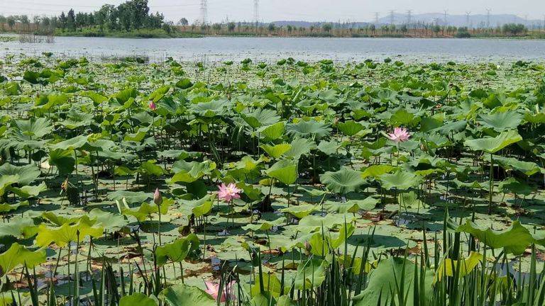 今天顶着大太阳,又一次到龙灵山游玩。池塘里的荷花开花了。