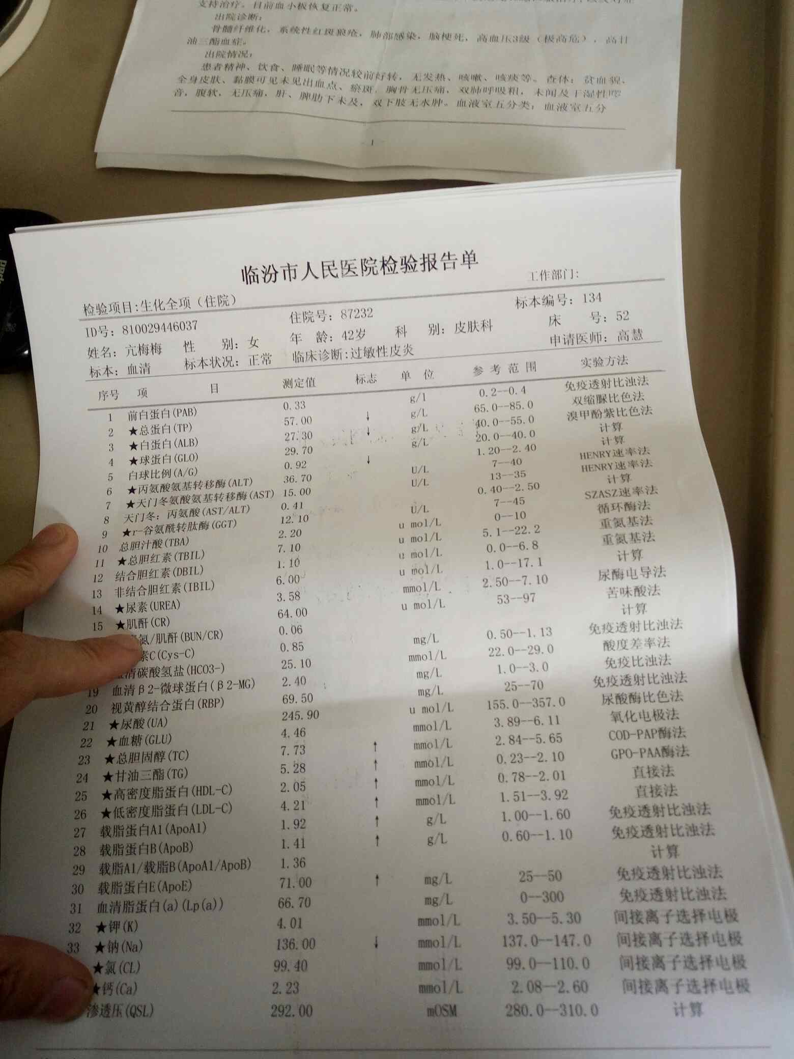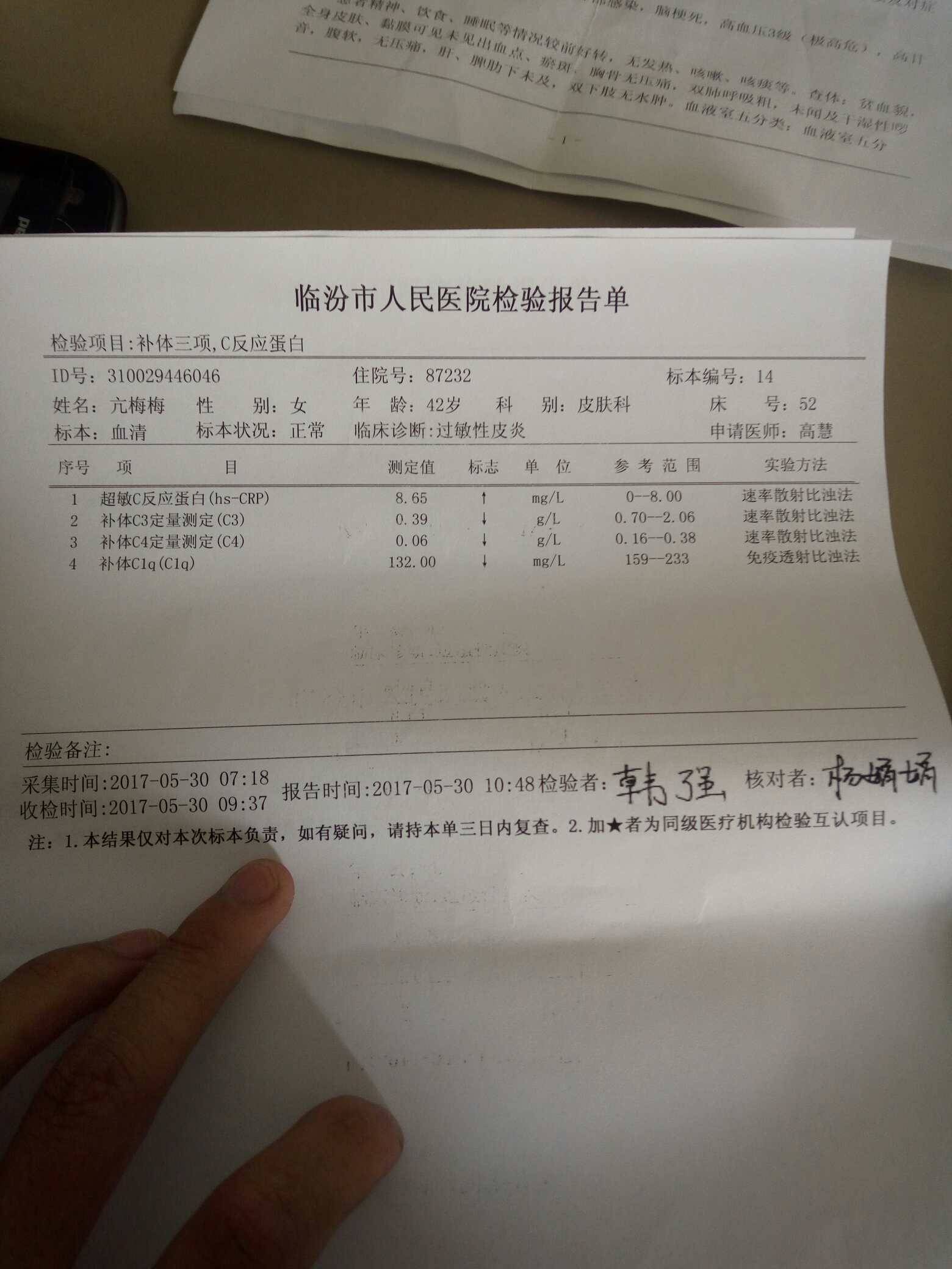 简简单单156好多箭头啊!补体好低啊!血沉也高,看箭头就能看出来了