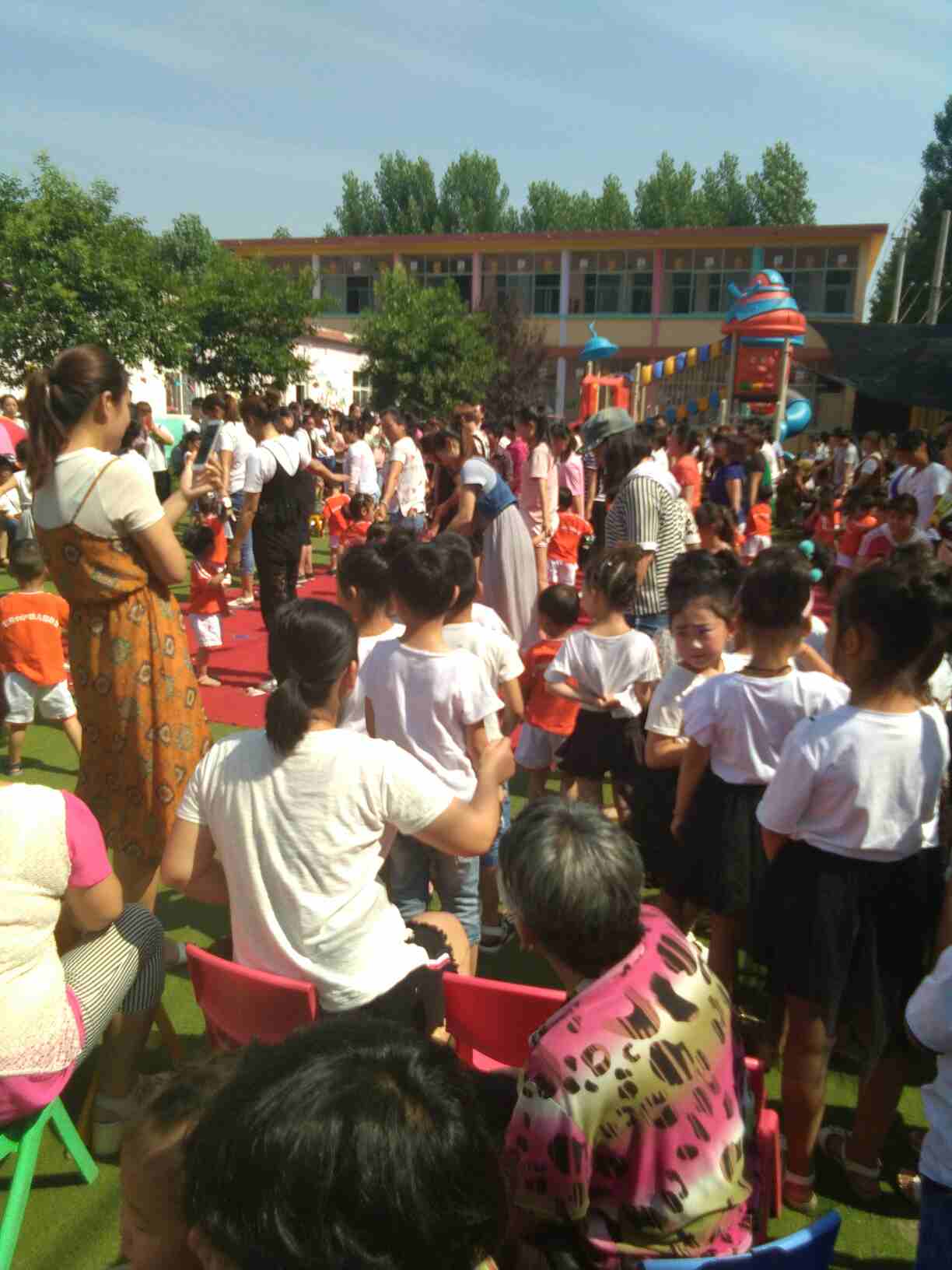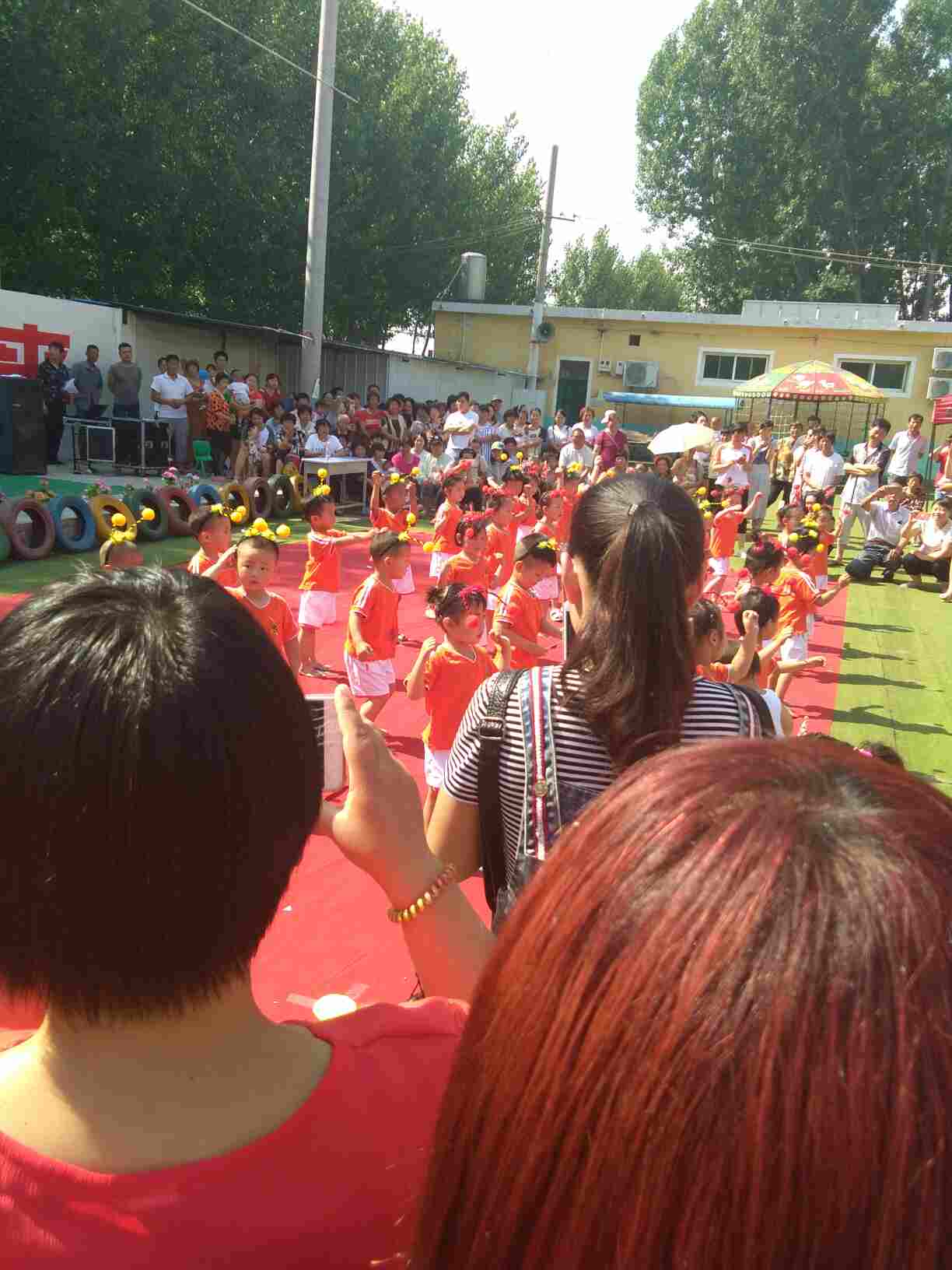 学校表演,顶着大太阳,热死了