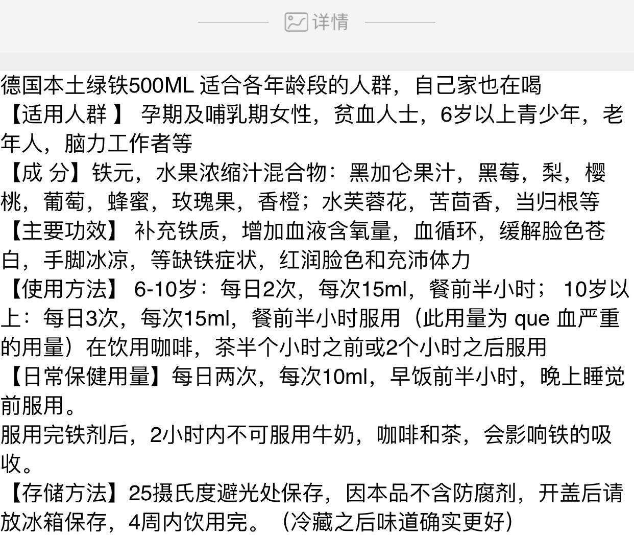 今天一个朋友从德国回来给我带了一瓶说是补铁补血的东西,上网查了一下是Floradix iron有机绿铁元500ml 德国 铁元 补铁。亲们有喝过吗?我们能喝吗?