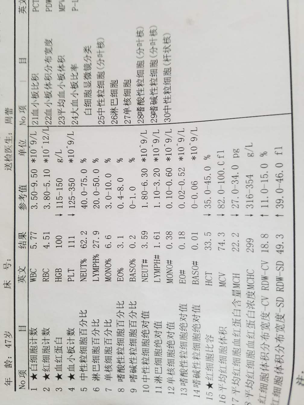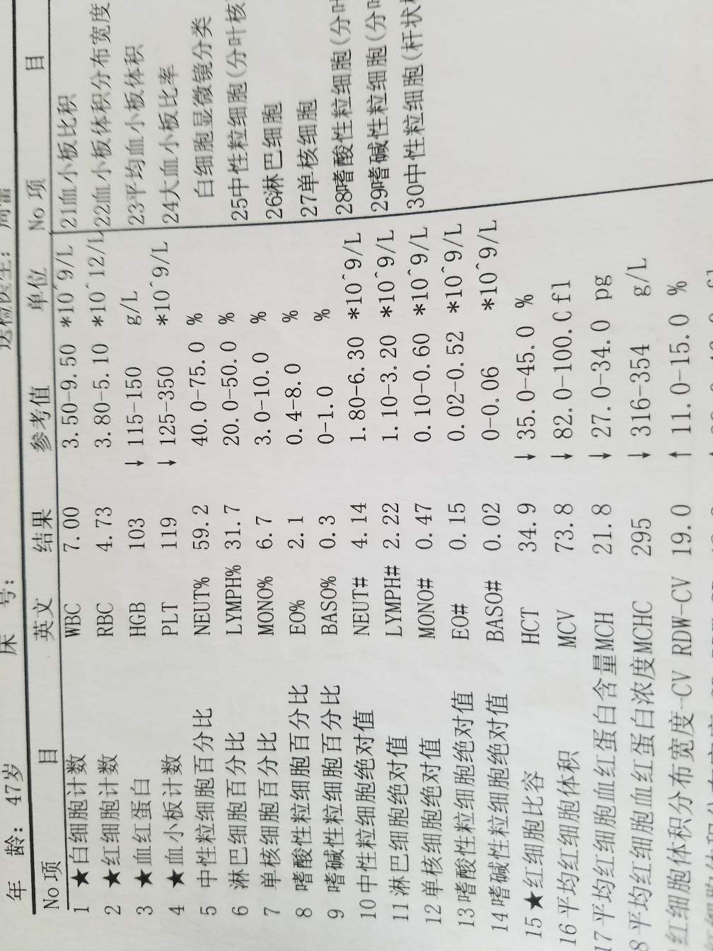 今天出来的检查结果,贪血、胆固醇高