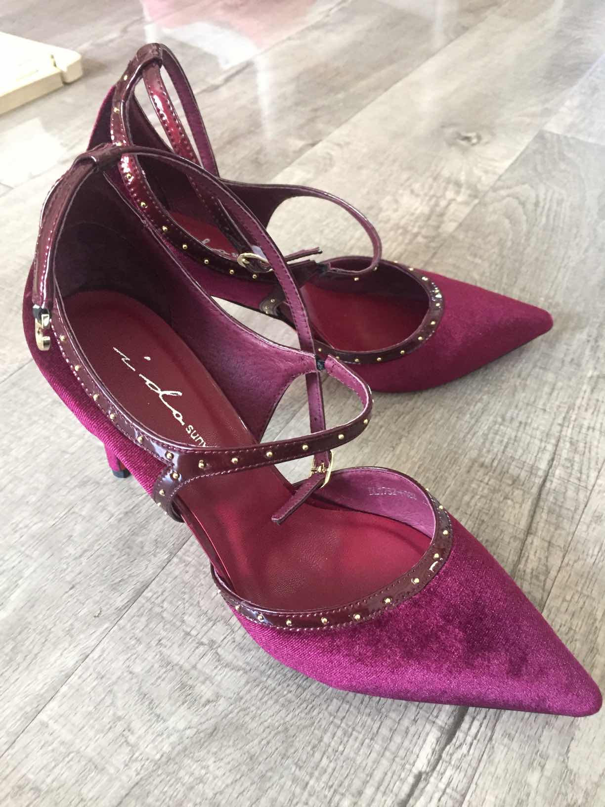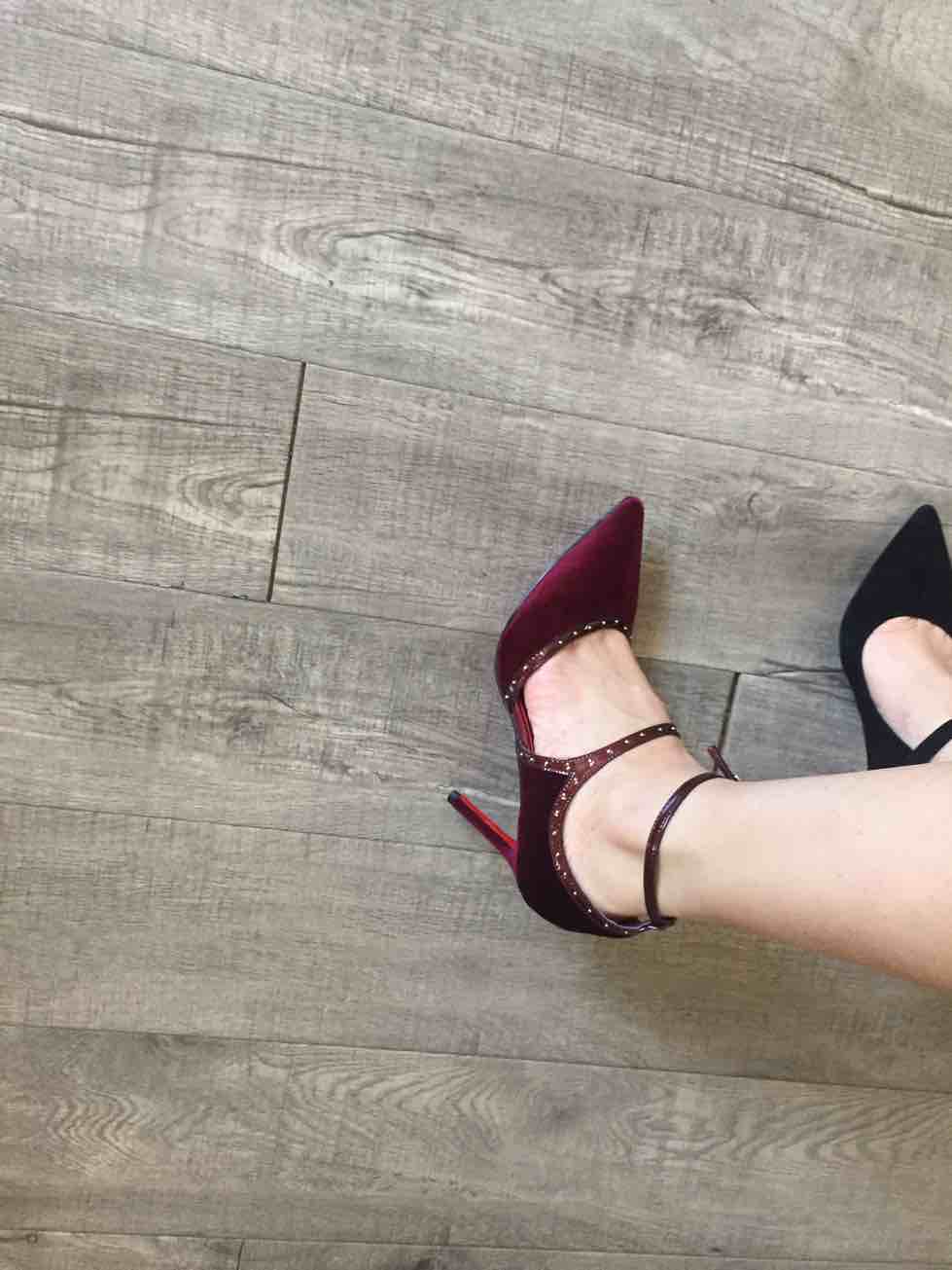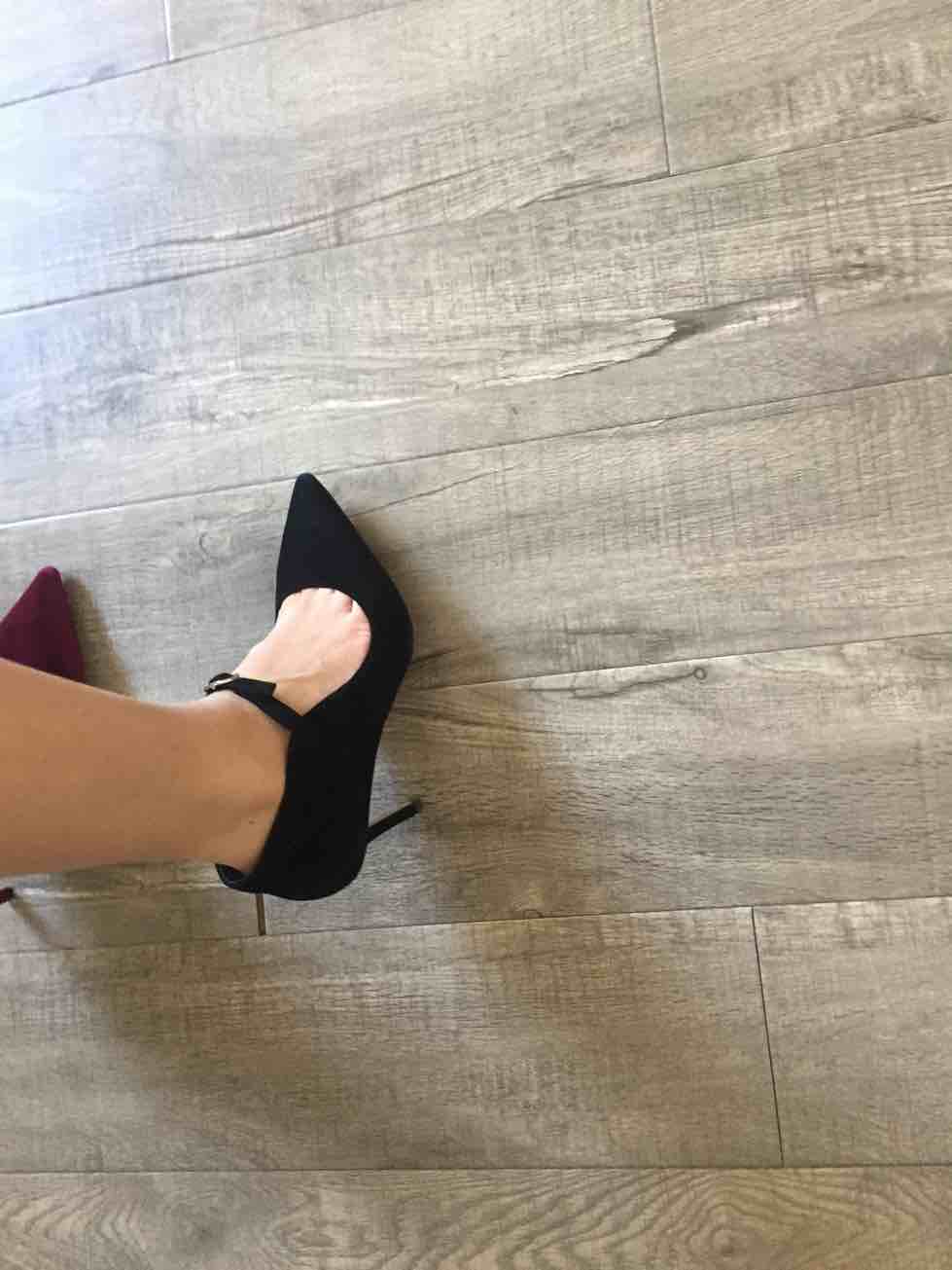 选来选去,从一排鞋子里选了最不起眼的,跟最矮的,先慢慢练吧!最后一张图片上,我发现了这双鞋子的优点,就是显腿长