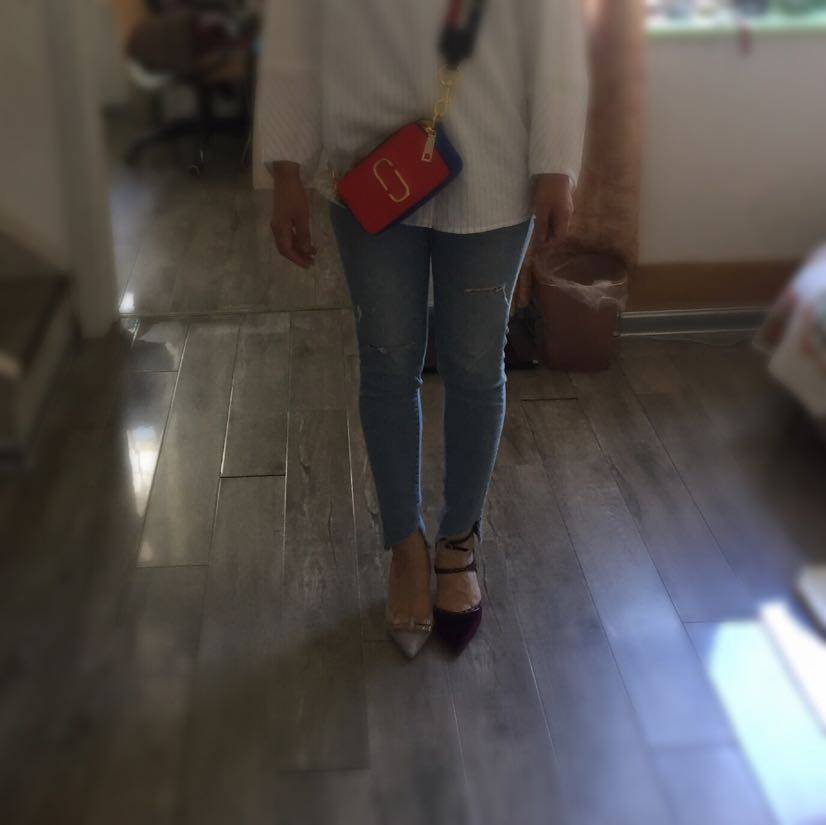 选了一排鞋子,分别配两种感觉的衣服,然后放弃了修身款的裙子,穿仔裤和衬衫,还能遮遮大腿和肚子