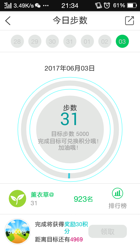 今天计步器动了三十一下,平时怎么走都不动