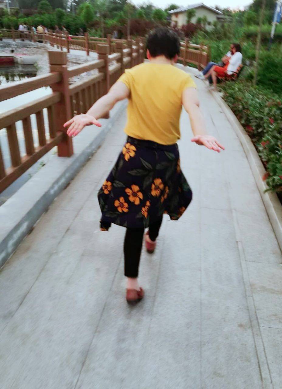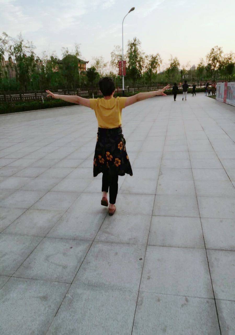 在老公的鼓励陪伴下我走出了家门,加入到了锻练的队伍中,为此我也成了锻练人群中最"出众‘’的一位,不但打扮奇特,为了锻炼水肿的胳膊,还要边走边做各类"奇葩‘’动作。