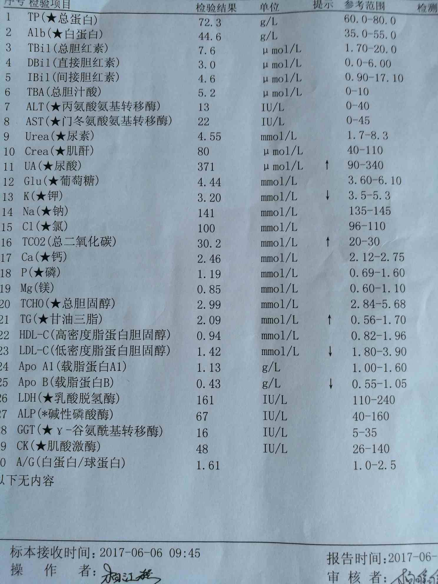 自从上次检查钾低后停药一周。这次检查有了考试的感觉。大家看看我的检查,需要注意什么了。