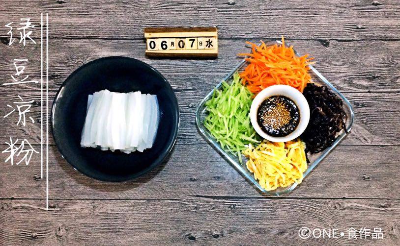 绿豆淀粉是在网上买的,粉水比例是1:6,煮开转小火边搅拌到没有生粉,放保鲜盒里凉透就可以享用,配菜的胡萝卜丝是焯熟的先焯胡萝卜再焯木耳,调味汁是麻酱、酱油、醋,辣椒油、花椒油、芝麻