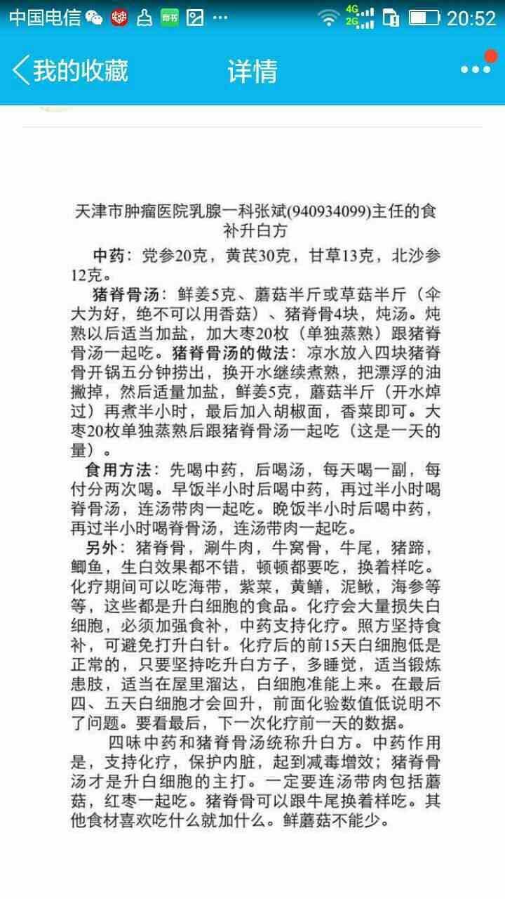 下周一就要第二次化疗了。昨天去查血常规,白细胞还是3.3,粒细胞为零。医生说明天再去查,如果还没升到4以上就要打升白针了。我还是希望通过食补升白。姐妹们谁有快速升白的食补方法麻烦分享一下哦!谢谢!