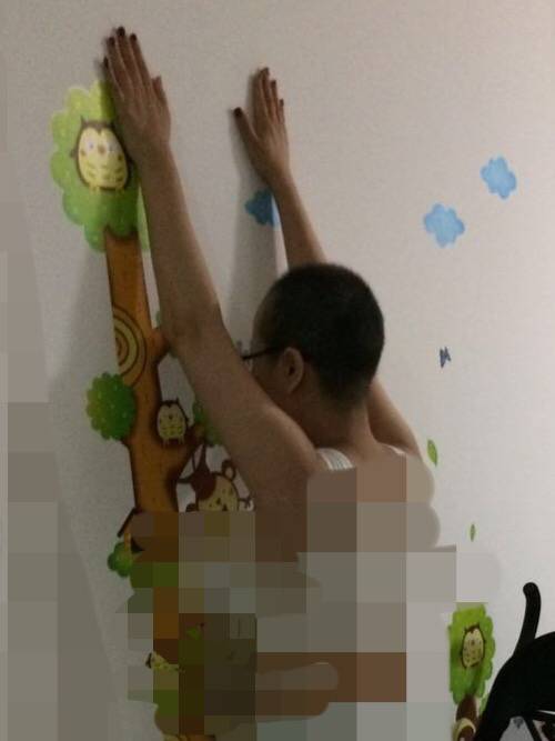 你应该是一只手爬上去 然后身体侧面,也就是手术的那侧靠墙爬上去,这样为更好,