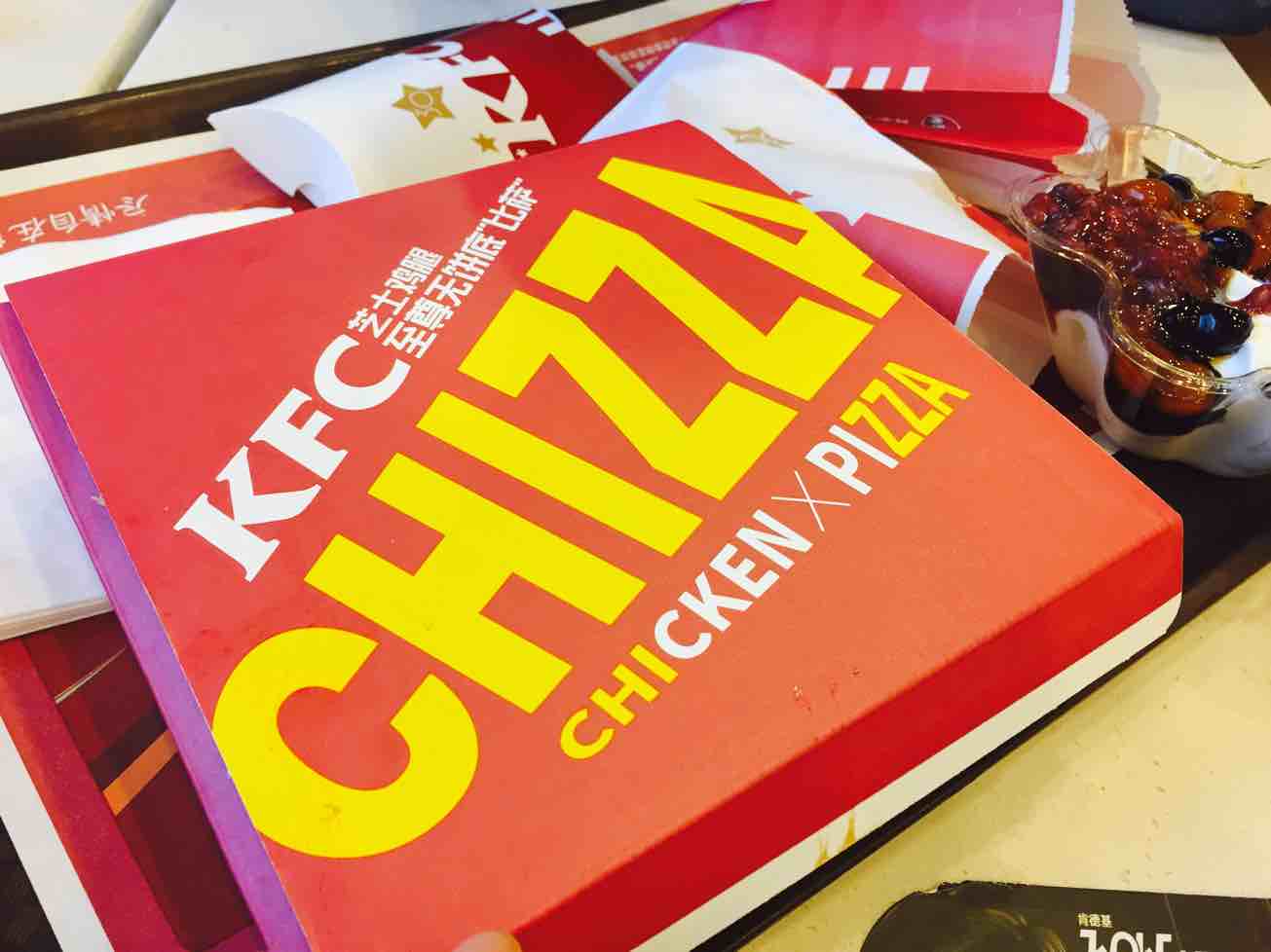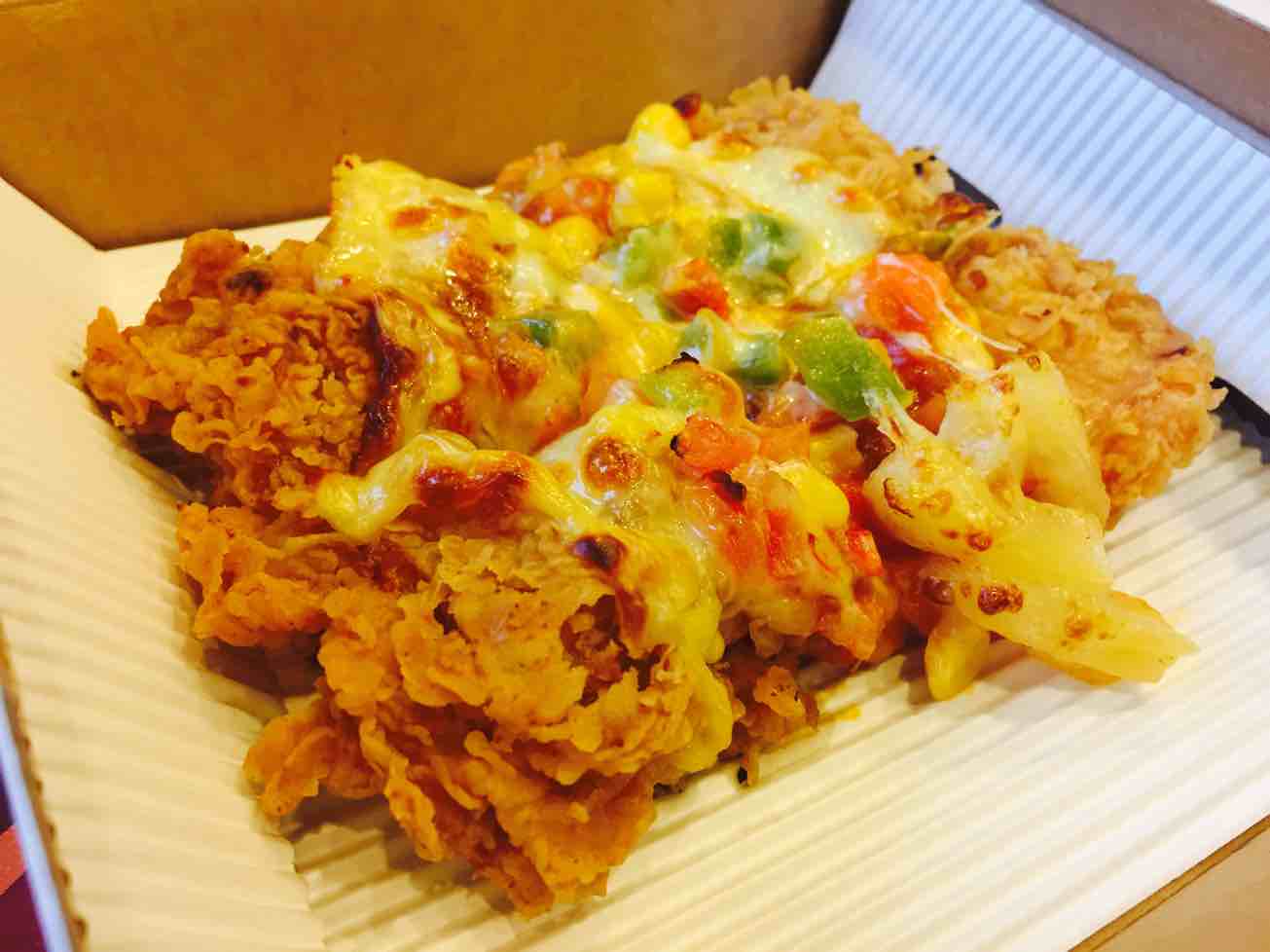 看完电影去吃了微辣的厕所串串和肯德基新出的chizza,还挺好吃的~开心^^