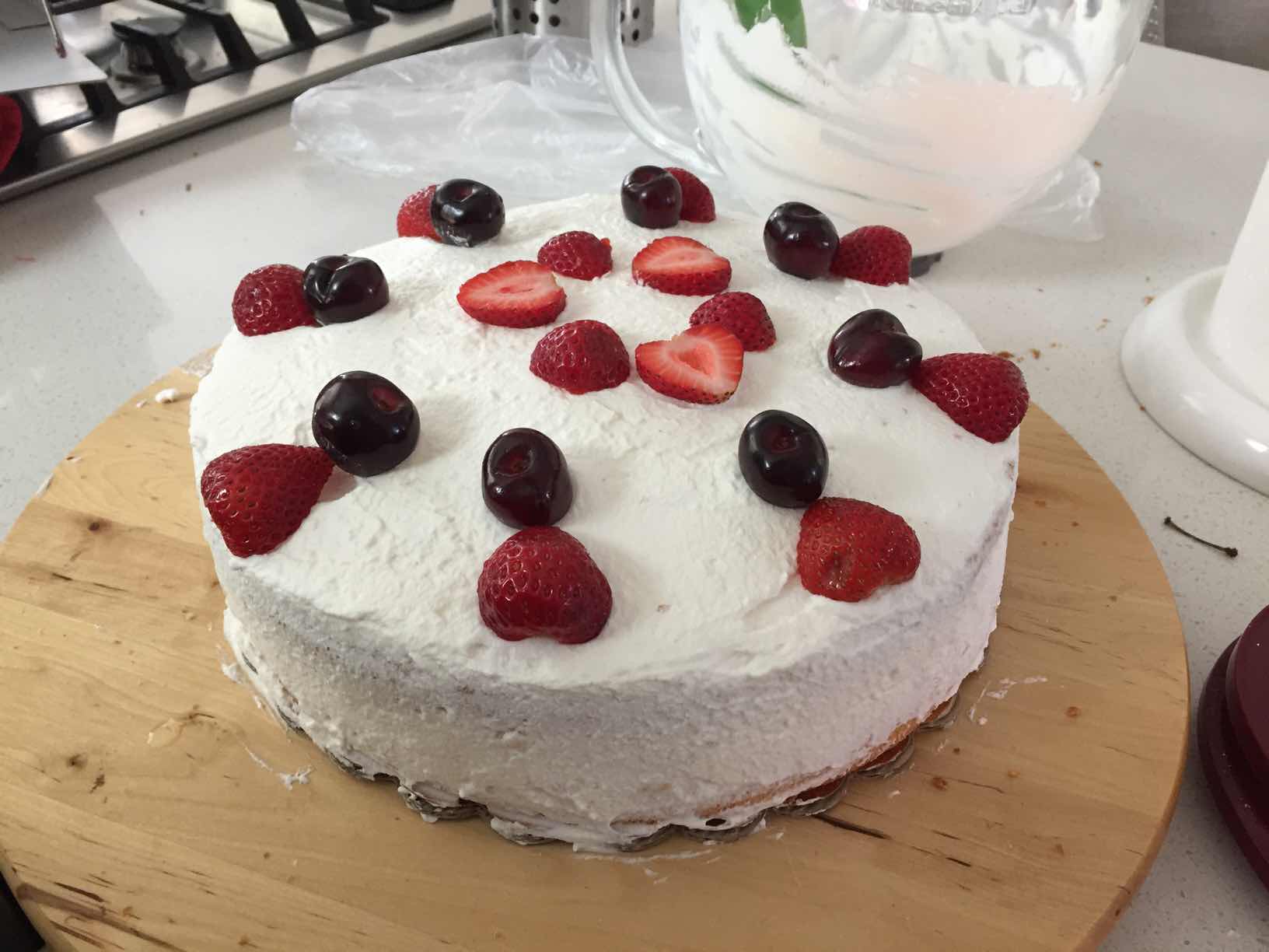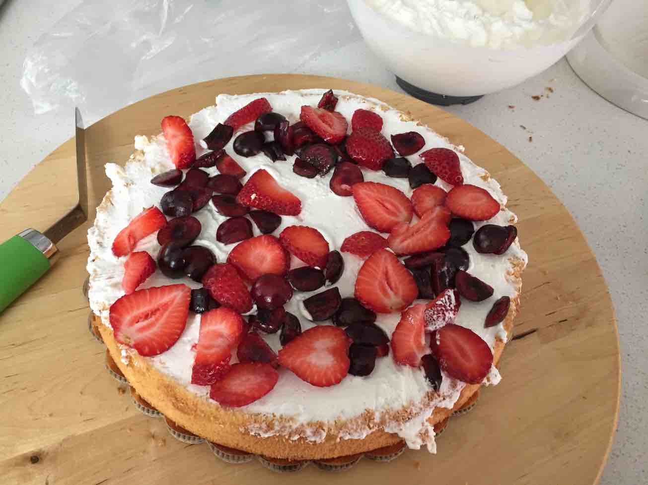我做的蛋糕是有夹心的,图一是夹心的部分,是不是好多水果好实在哈哈哈