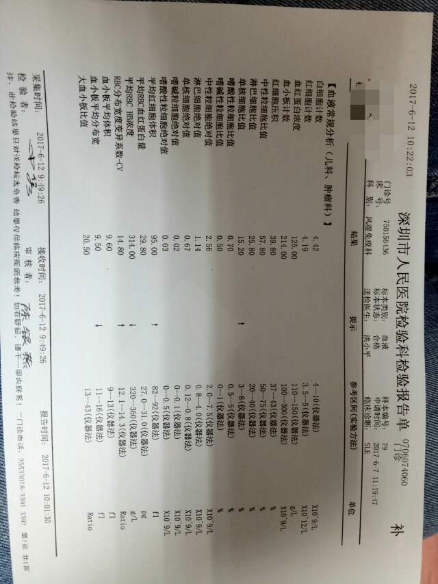 出院后第三次复查,小惊喜!白细胞升到正常范围之内了,尿蛋白转阴了。潜血由3 降到2 了。首先恭喜自己!