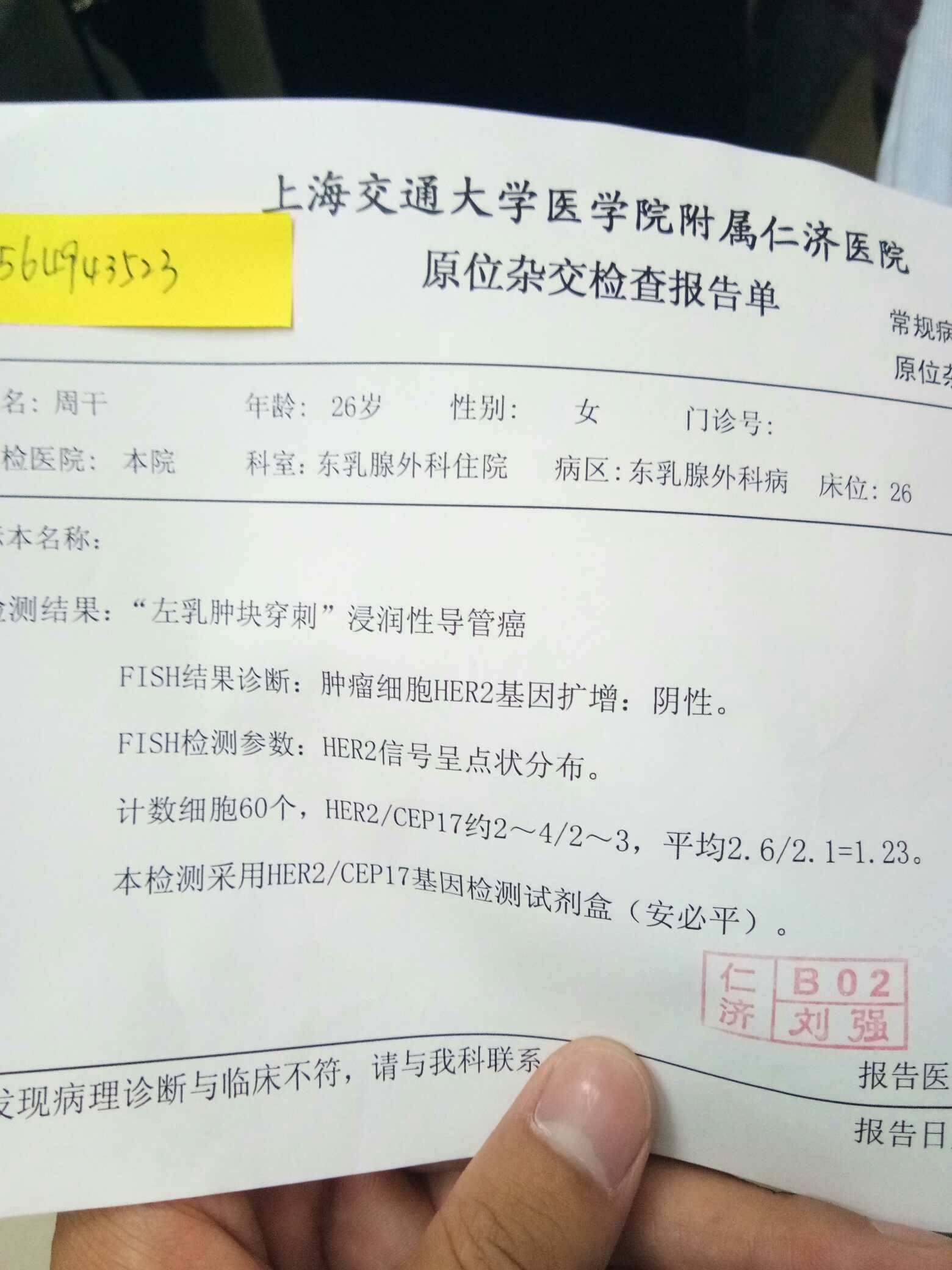 阴性。和我一样。内分泌治疗就行。