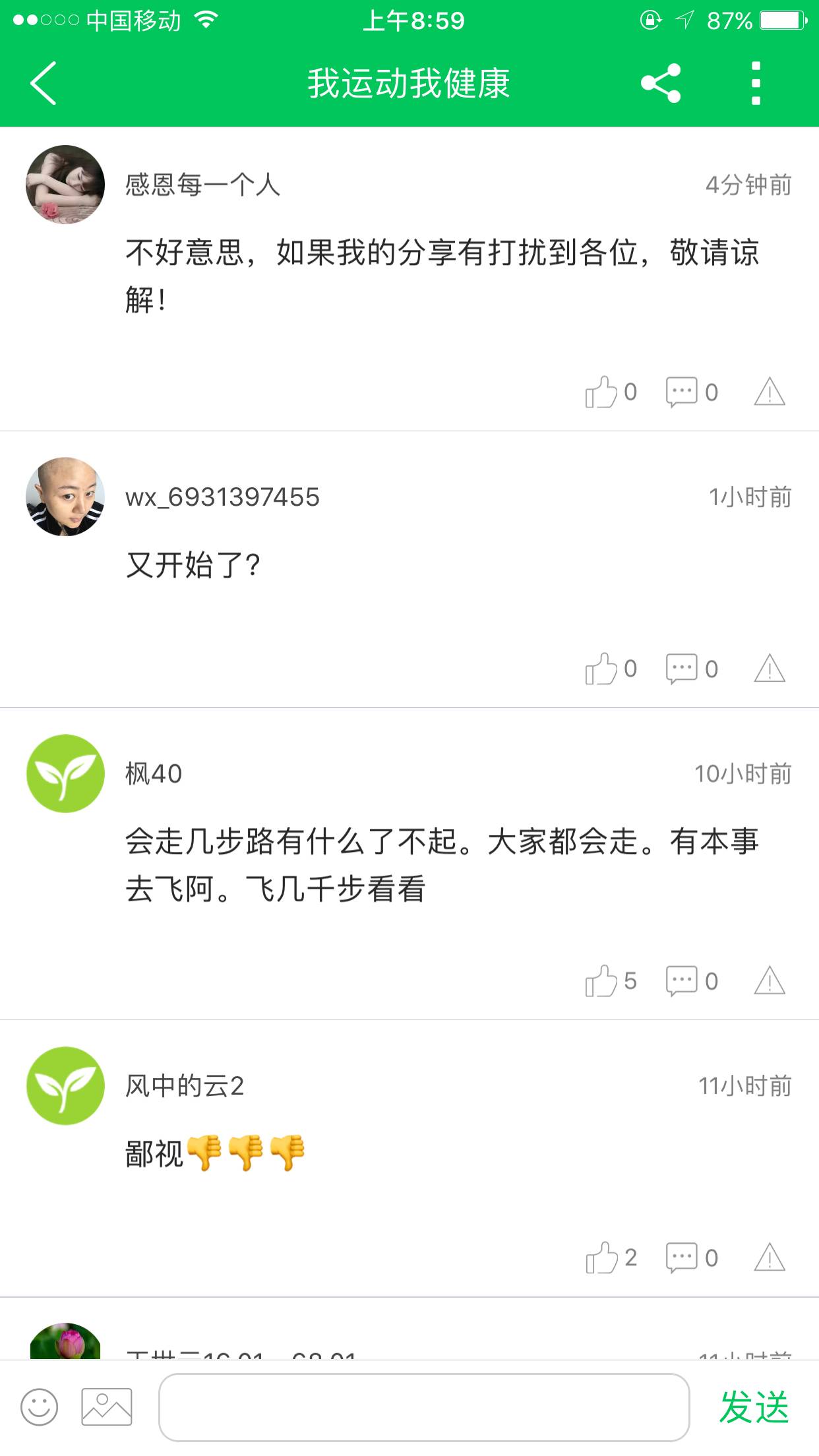 你分享你的步数就能找到自信吗?这本是一个健康交流的,每天打打就看到晒步,那些姐妹们的倾诉全被无聊的晒步刷新了,谁能没意见呢!