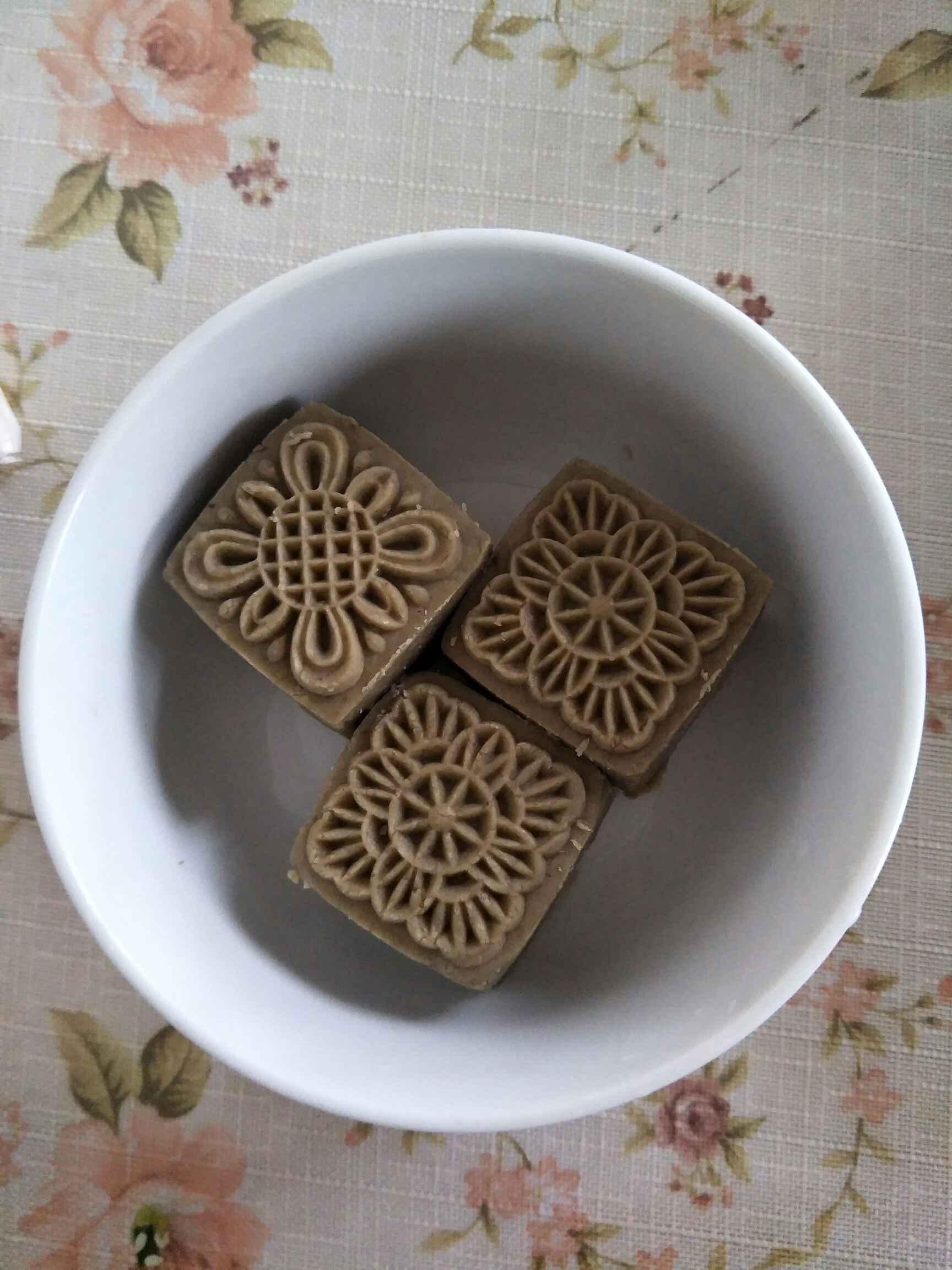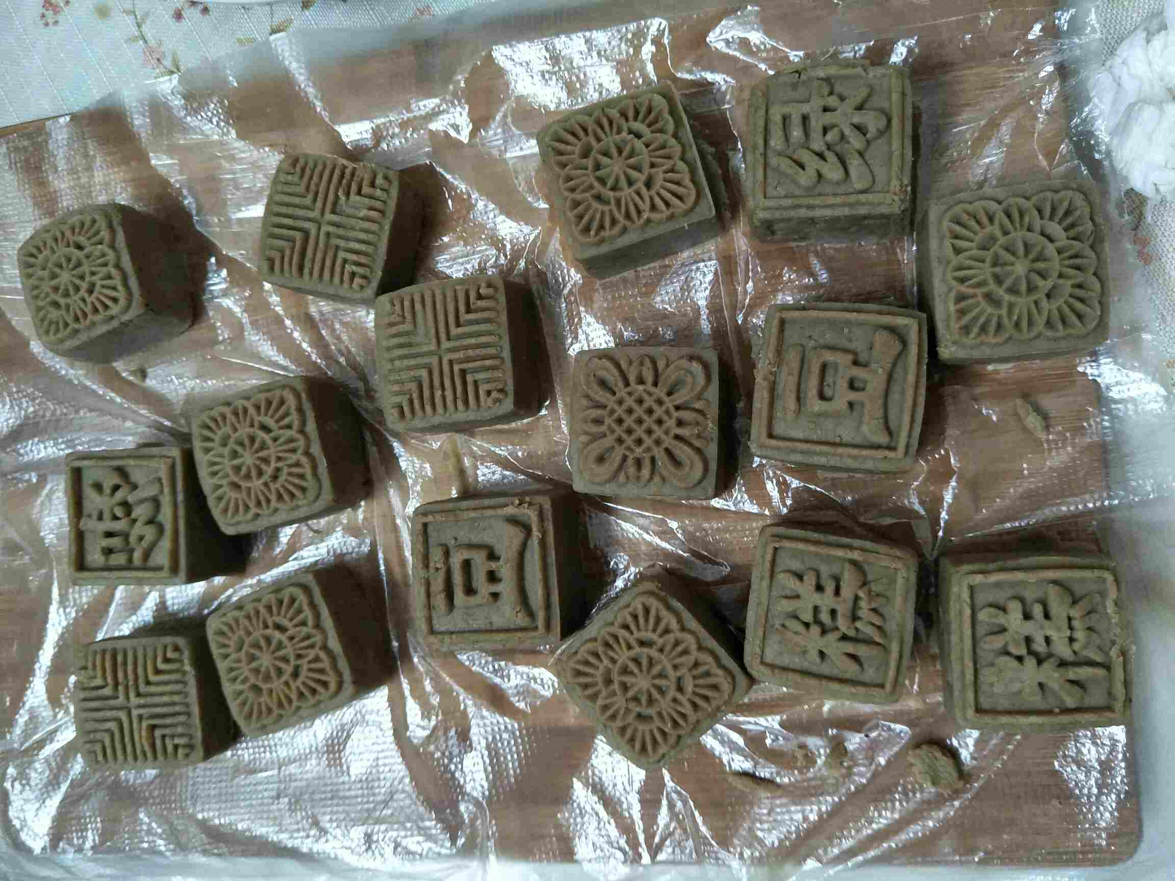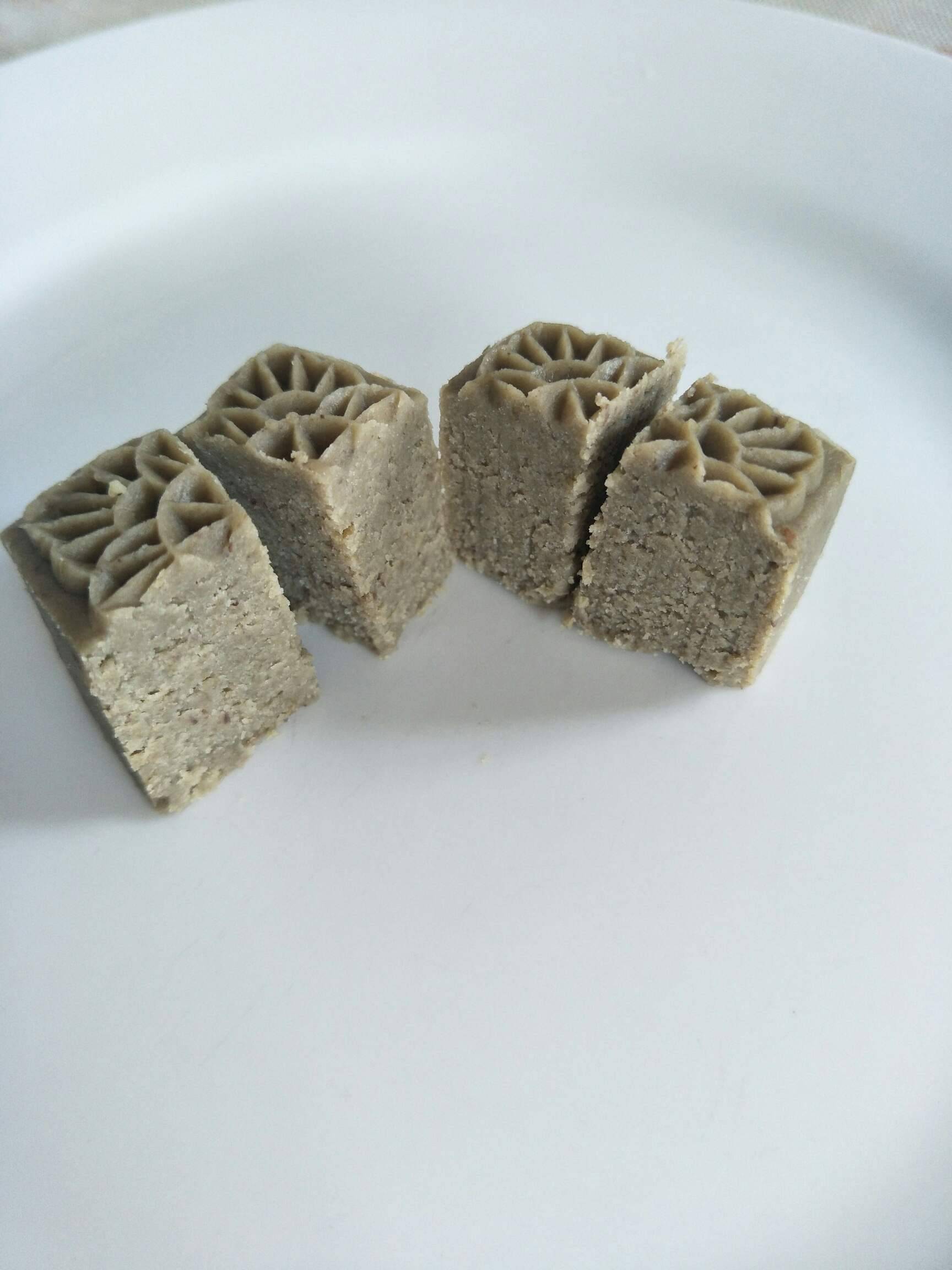 现在说说绿豆糕的做法,有5个步骤:泡豆,煮豆,搅拌机打碎,炒干,定型。