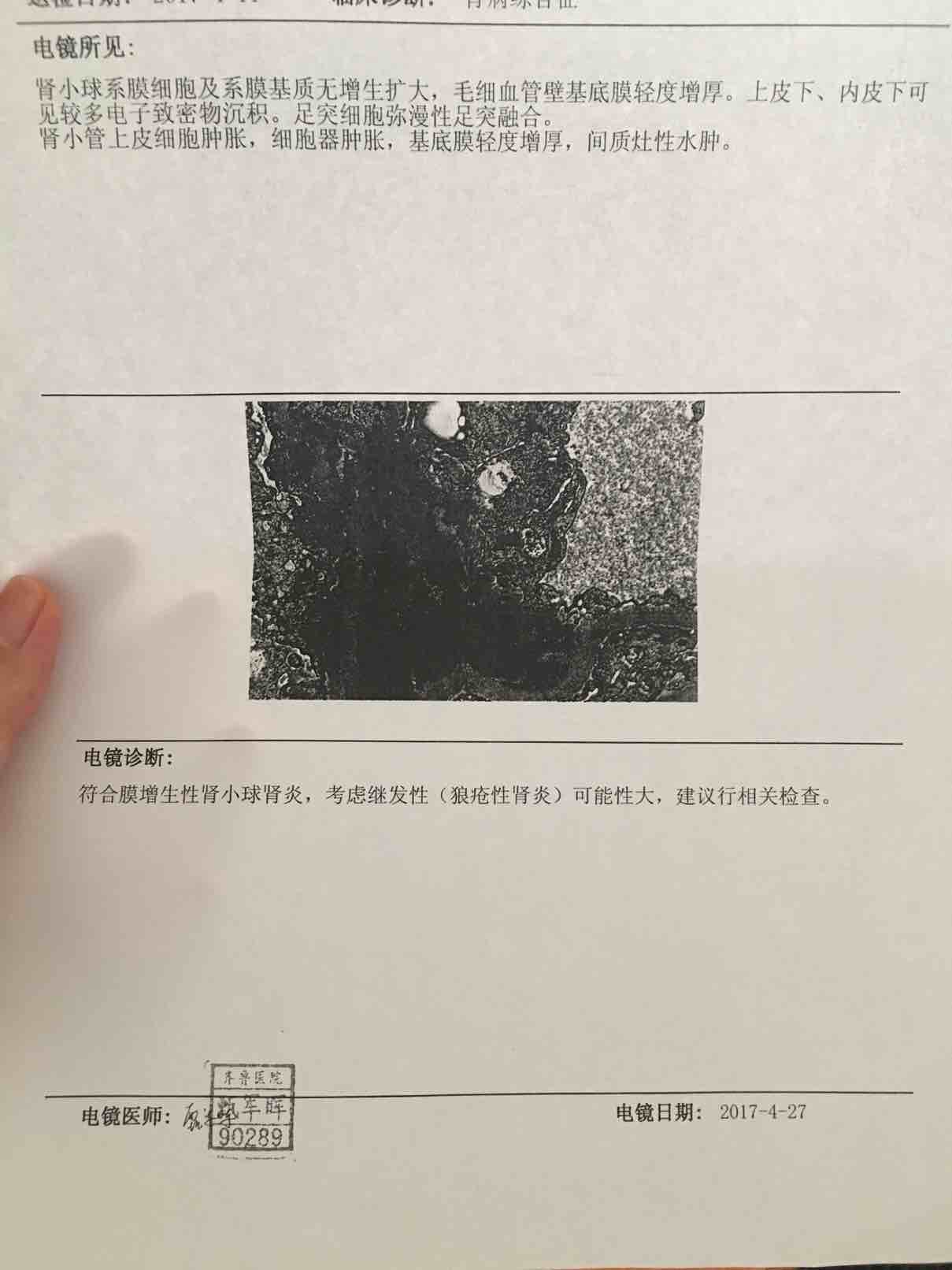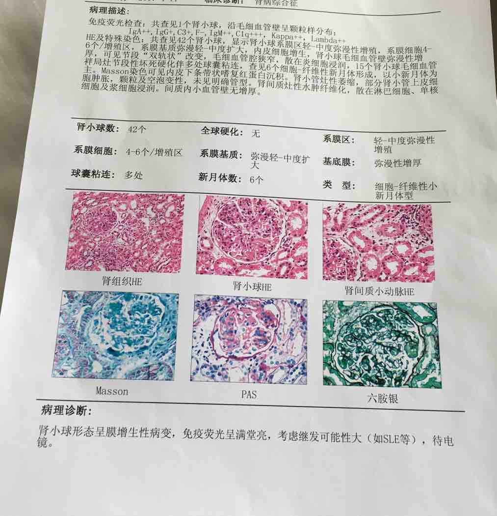 你的应该是五型,叫啥模型红斑狼疮。我的跟你一样。就是说红斑狼疮引起的五型狼疮肾炎