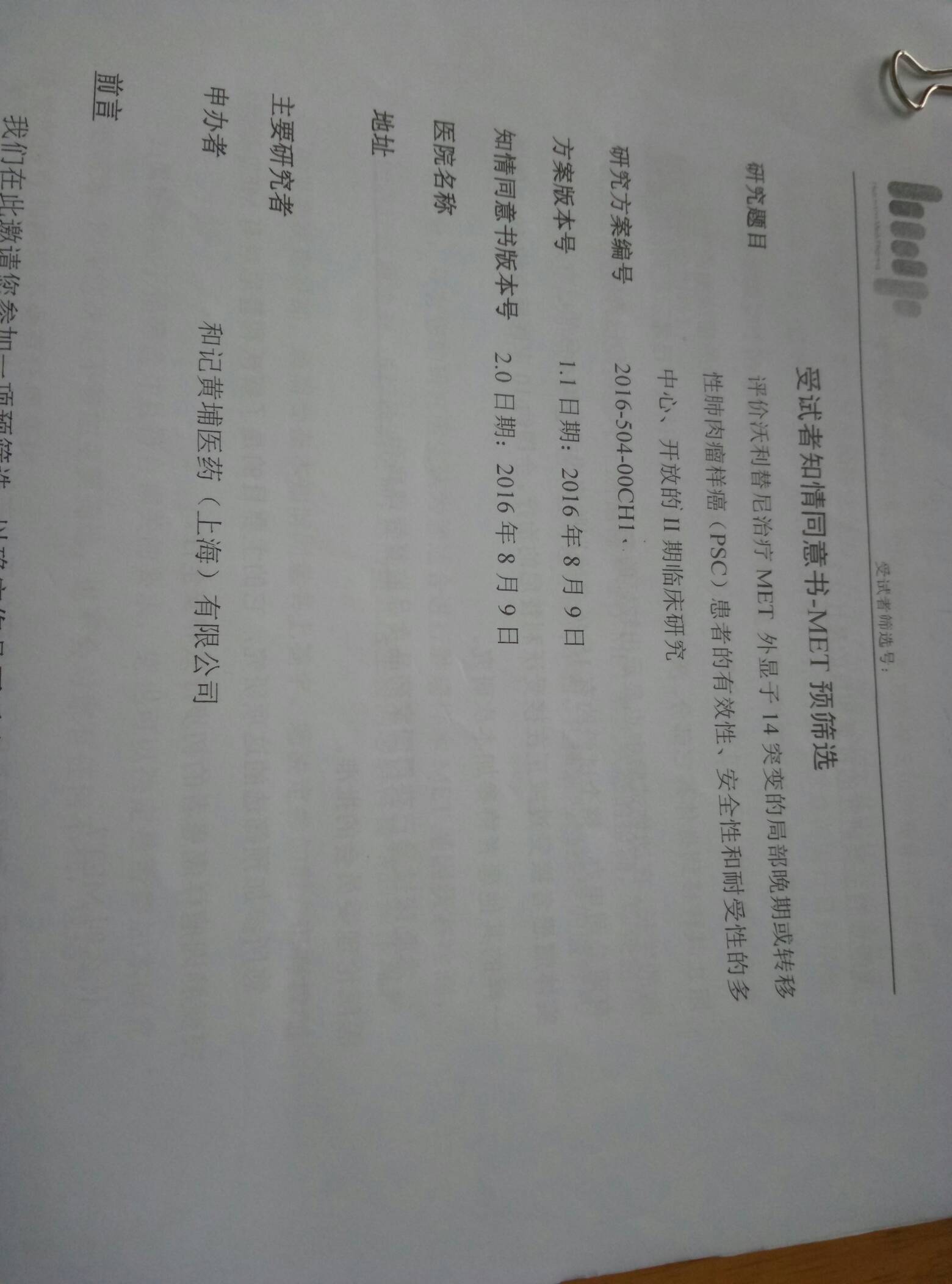 沃刺替尼靶向药美国己上市,上海和记黃埔公司这药在做临床试验二期,我親属服药后癌缩小三分之二,要做基因CMET的基因配对,化疗是沒用的,我电话15000292732如需帮助,每天九点到廿一点朕糸陈先生。