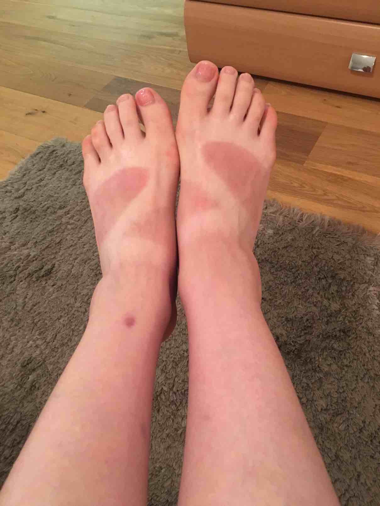 晒一天脚就那样,太阳太厉害了
