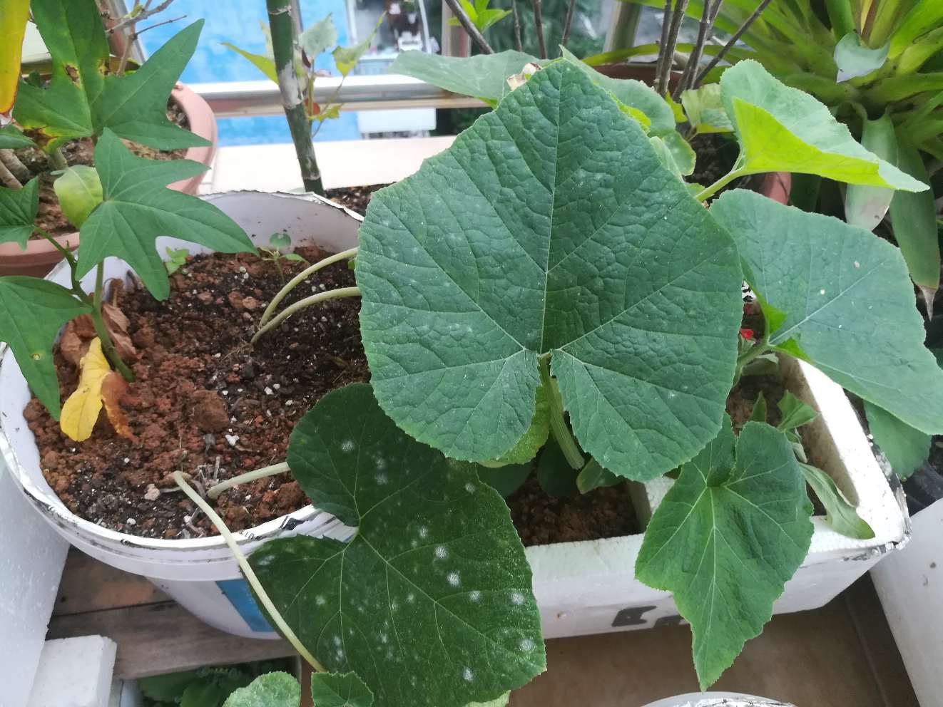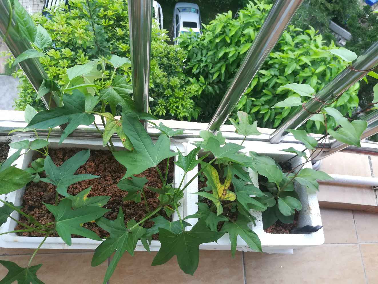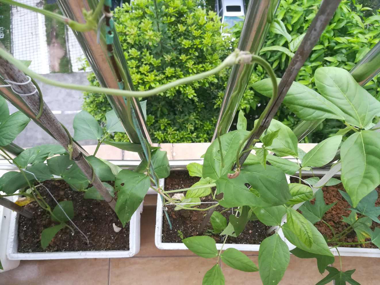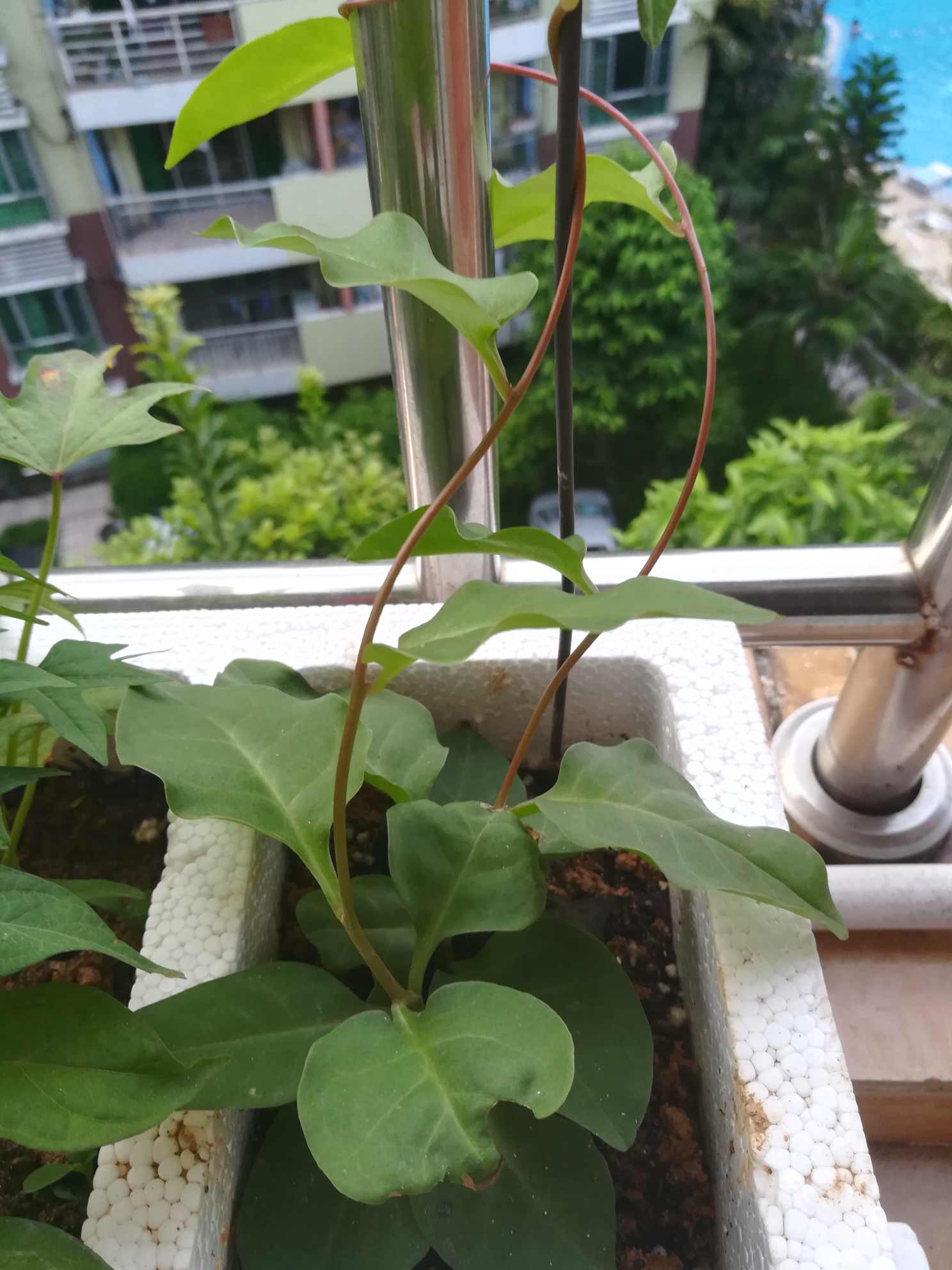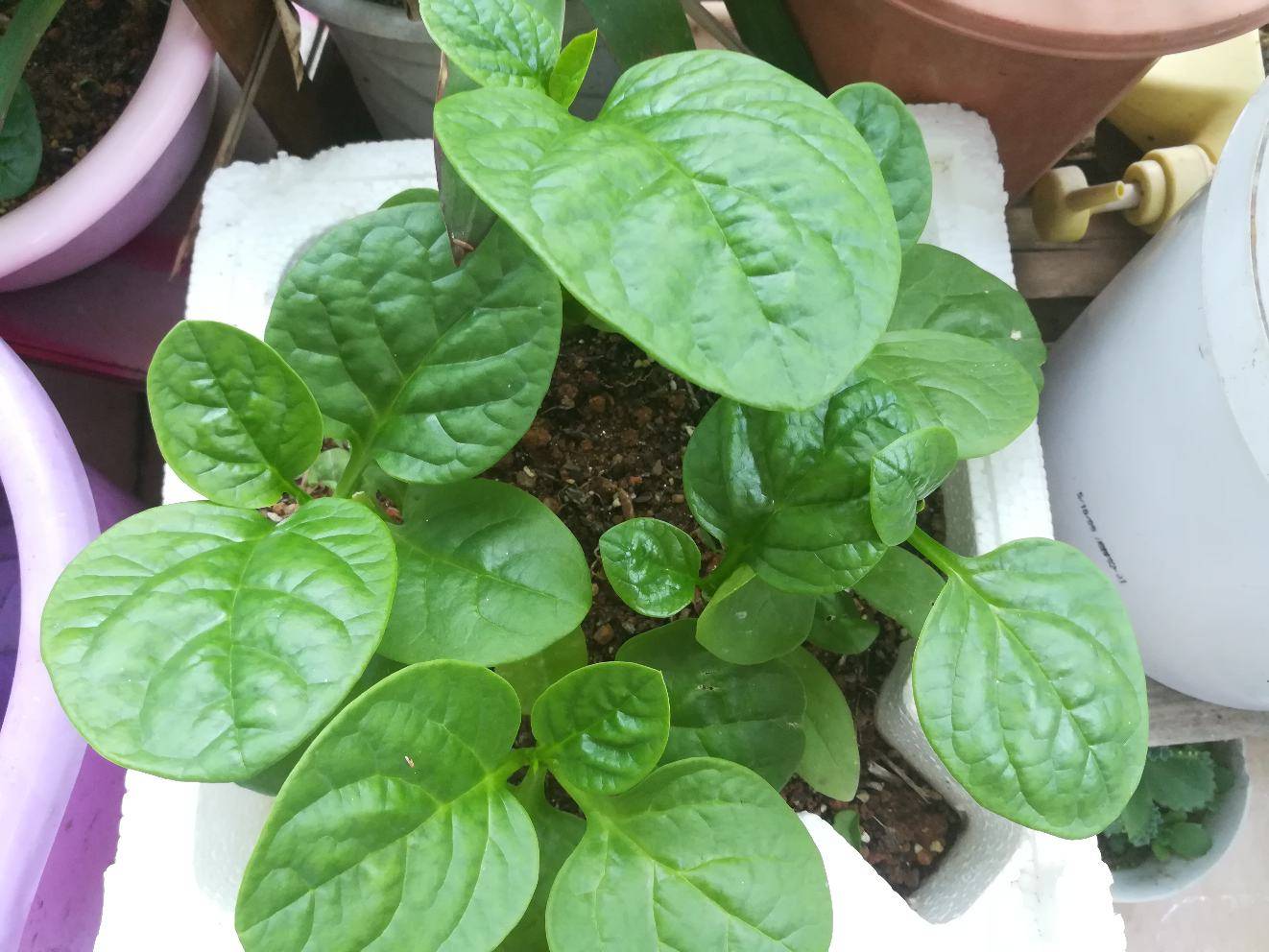 术后九个月了,还在休养中,贼闲在家的日子找点事做,种菜。邻居给了8粒豆角种子,两株秋葵苗,一株田七,自己又埋了个红薯在土里,路边拾了几株木耳菜苗,南瓜苗,好吧,都种上,话说8粒豆角种子都发芽长苗了,还结出了豆角,真让人喜出望外。木耳菜已摘过一次叶子煮面吃了,这又长出新叶了,两株秋葵一株长势不错,却老不见开花结果,另一株叶子长了虫,老公给它"嗤嗤"喷了驱蚊虫花露水,下午就死了,原来这花露水还有这等杀伤力。每天早上去阳台上看望它们,关注它们成长,也蛮有成就感的,姐妹们都在家玩些啥呢?